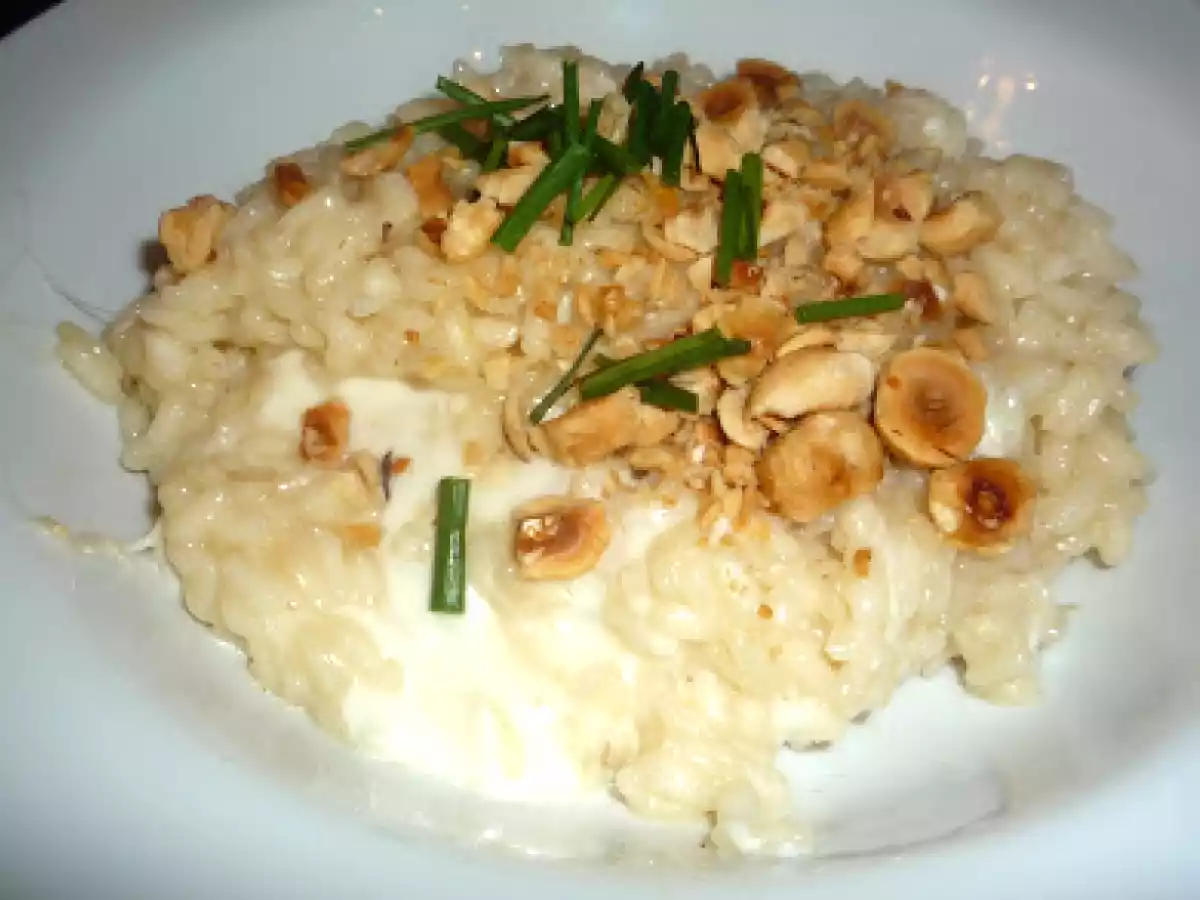 Risotto mantecato con crescenza e nocciole vota adesso Portata principalefacile50 min Invia questa ricetta ad un amico Stampa la ricetta Contatta l'autore della Ricetta Pubblica la foto di questa ricetta Ingredienti 4 320 g di riso arborio Uno scalogno Brodo Vino bianco 200 g crescenza 50 g nocciole pelate e tostate Erba cipollina Burro 40 g