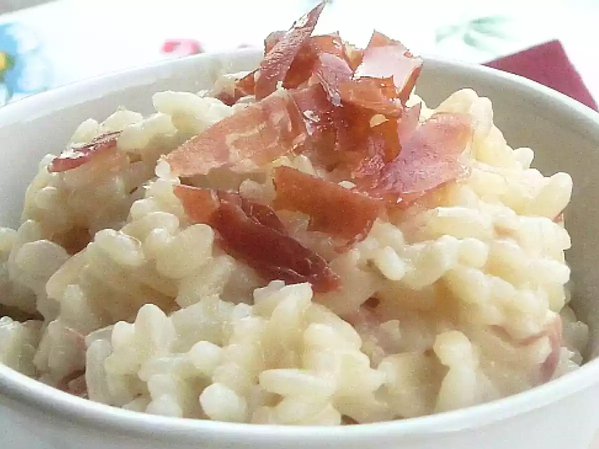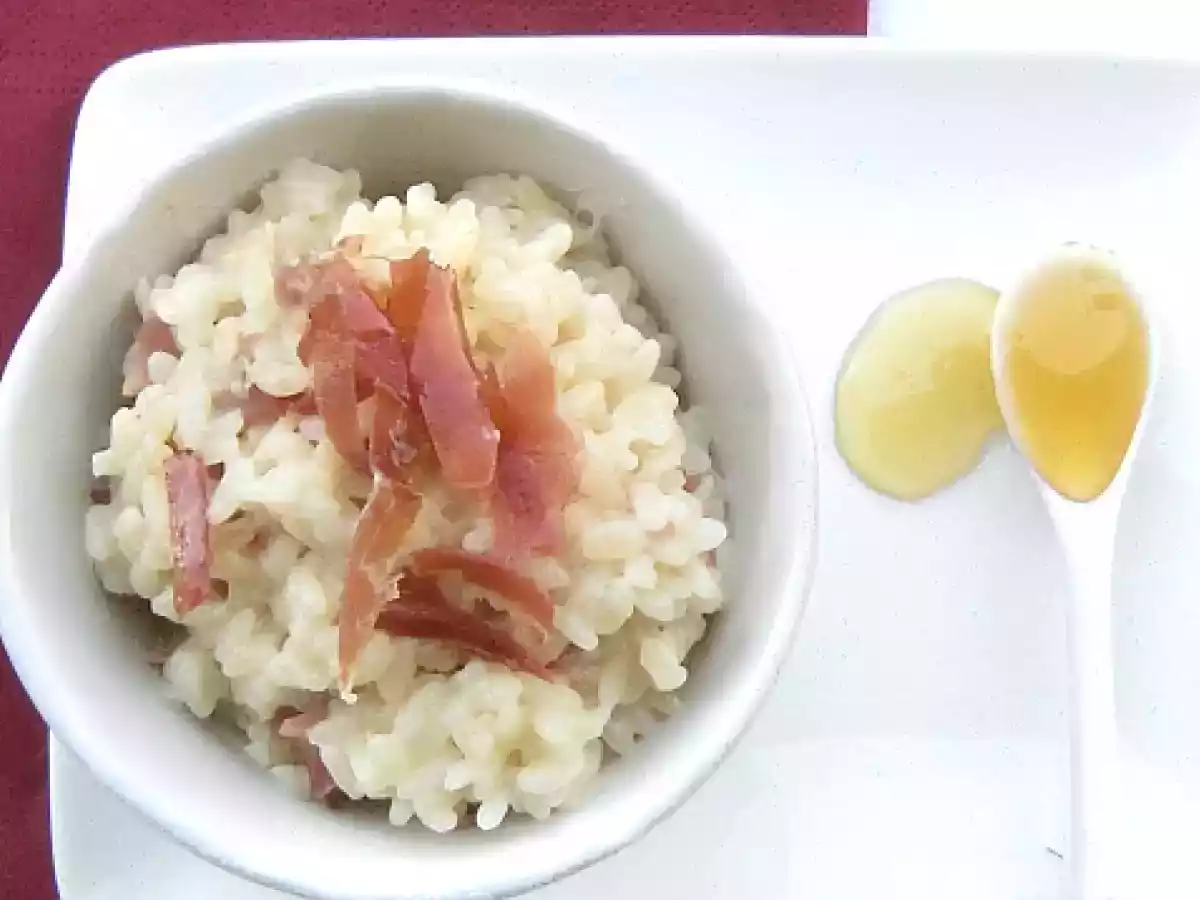 Risotto prosciutto crudo, caprino e miele di castagno vota adesso PrecedenteProssimo Portata principalefacile50 min192 Kcal Invia questa ricetta ad un amico Stampa la ricetta Contatta l'autore della Ricetta Pubblica la foto di questa ricetta Ingredienti 4 150 g riso 1 scalogno brodo q.b. prosciutto crudo miele di castagno vino bianco Costo stimato: 2.24Euros€ (0.56€/Porzioni)