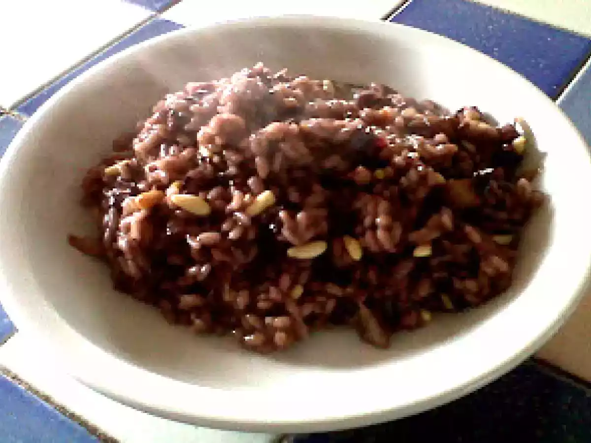 Risotto radicchio e pinoli vota adesso Portata principalefacile50 min497 Kcal Invia questa ricetta ad un amico Stampa la ricetta Contatta l'autore della Ricetta Pubblica la foto di questa ricetta Ingredienti 1 1/2 cespo piccolo di radicchio di verona 1/2 scalogno 90 g di vialone nano 1/4 di bicchiere di vino rosso brodo vegetale 1 cucchiaio di burro 1 cucchiaio di pinoli olio extravergine di oliva