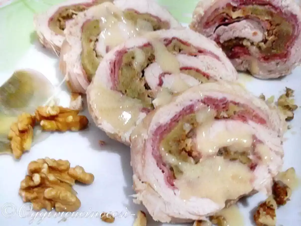Rollè o rotolo di tacchino ripieno con crema di carciofi e noci