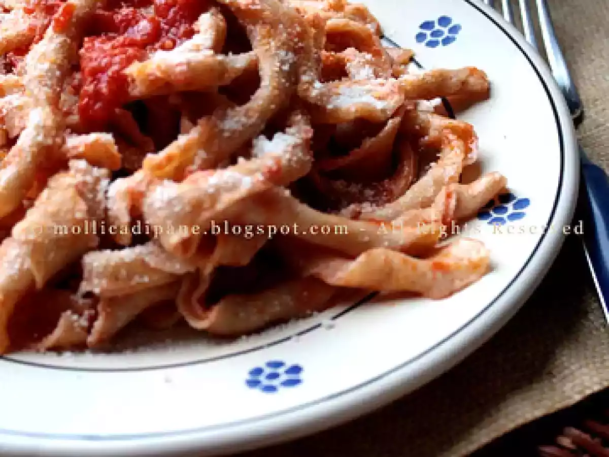 Sagne ncannulate; tradizione, pizzica e tarantismo Portata principalefacile50 min381 Kcal Invia questa ricetta ad un amico Stampa la ricetta Contatta l'autore della Ricetta Pubblica la foto di questa ricetta Ingredienti 3 220 gr Farina di semola rimacinata 110 gr di Farina integrale 165 cl acqua tiepida Costo stimato: 0.43Euros€ (0.14€/Porzioni)
