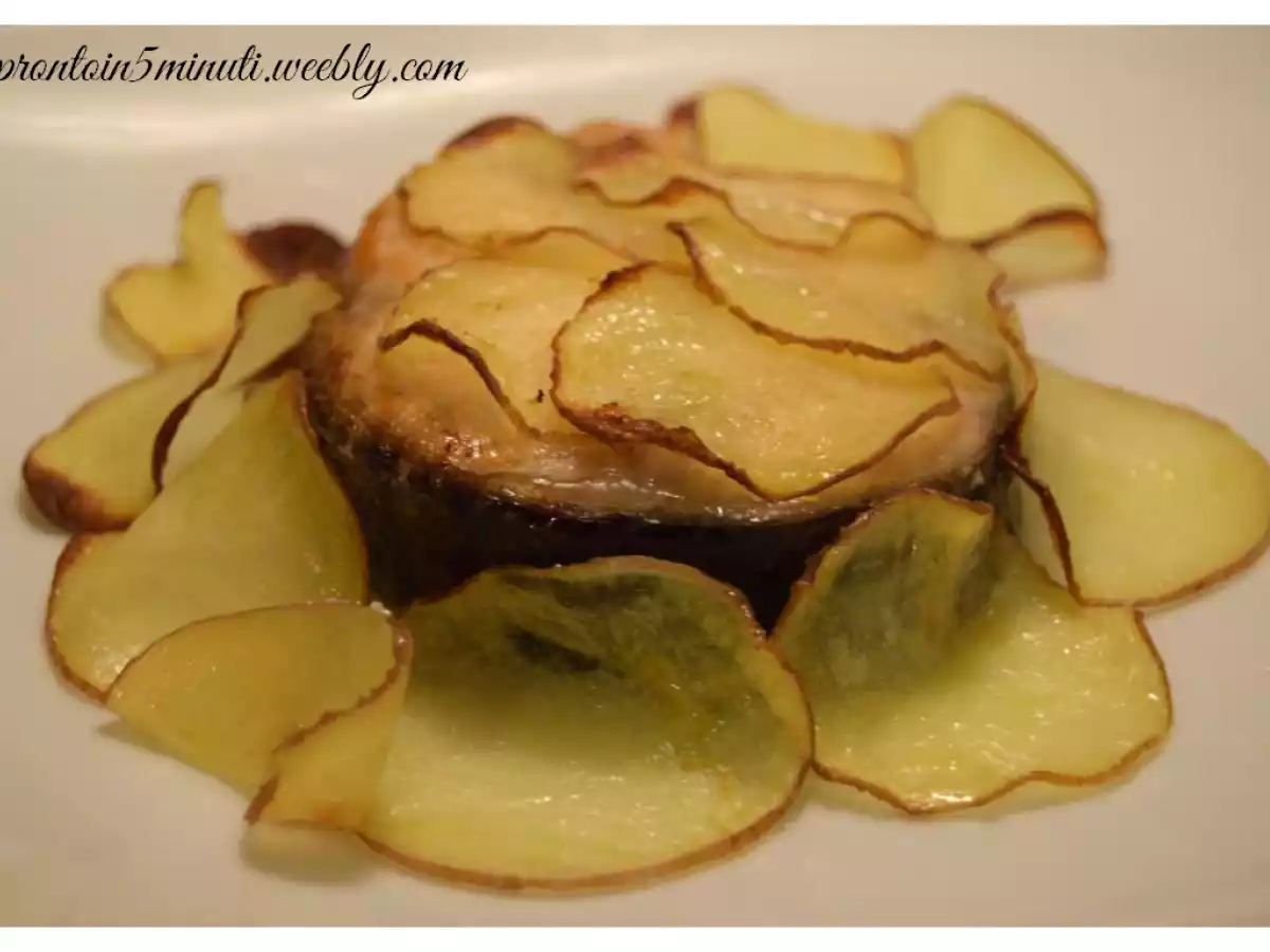 Salmone al forno con patate, la nostra cena di ieri sera. Un secondo piatto veramente facile e veloce da preparare. Ieri in pescheria ho visto questi bei tranci di salmone e ho pensato subito alla cena. Con poco tempo a disposizine si possono ugualmente preparare dei piatti buoni e saporiti. Vi consiglio di provare anche se avete degli ospiti, un bel piatto che fa anche il suo effetto oltre al gusto. Buon Appetito!!!