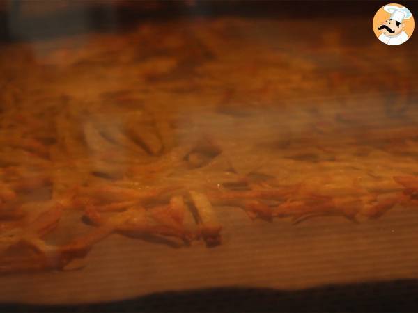 Ora scolate le patatine, rimettetele nella ciotola e mescolate con 1 cucchiaio di olio di oliva. Poi disponetele su una teglia ricoperta di carta forno ed infornate per 20 minuti a 220°C. Sfornate e lasciate raffreddare.