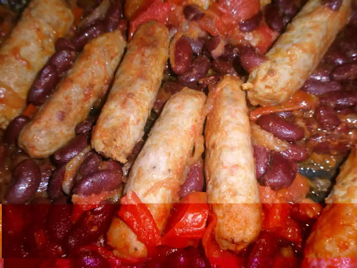 Salsicce ai fagioli rossi PrecedenteProssimo Portata principalefacile20 min394 Kcal Invia questa ricetta ad un amico Stampa la ricetta Contatta l'autore della Ricetta Pubblica la foto di questa ricetta Ingredienti 3 400 g di salsiccette di tacchino 600 g di fagioli rossi una cipolla una costa di sedano pomodorini 2 cucchiai di passata di pomodoro Costo stimato: 4.65Euros€ (1.55€/Porzioni)