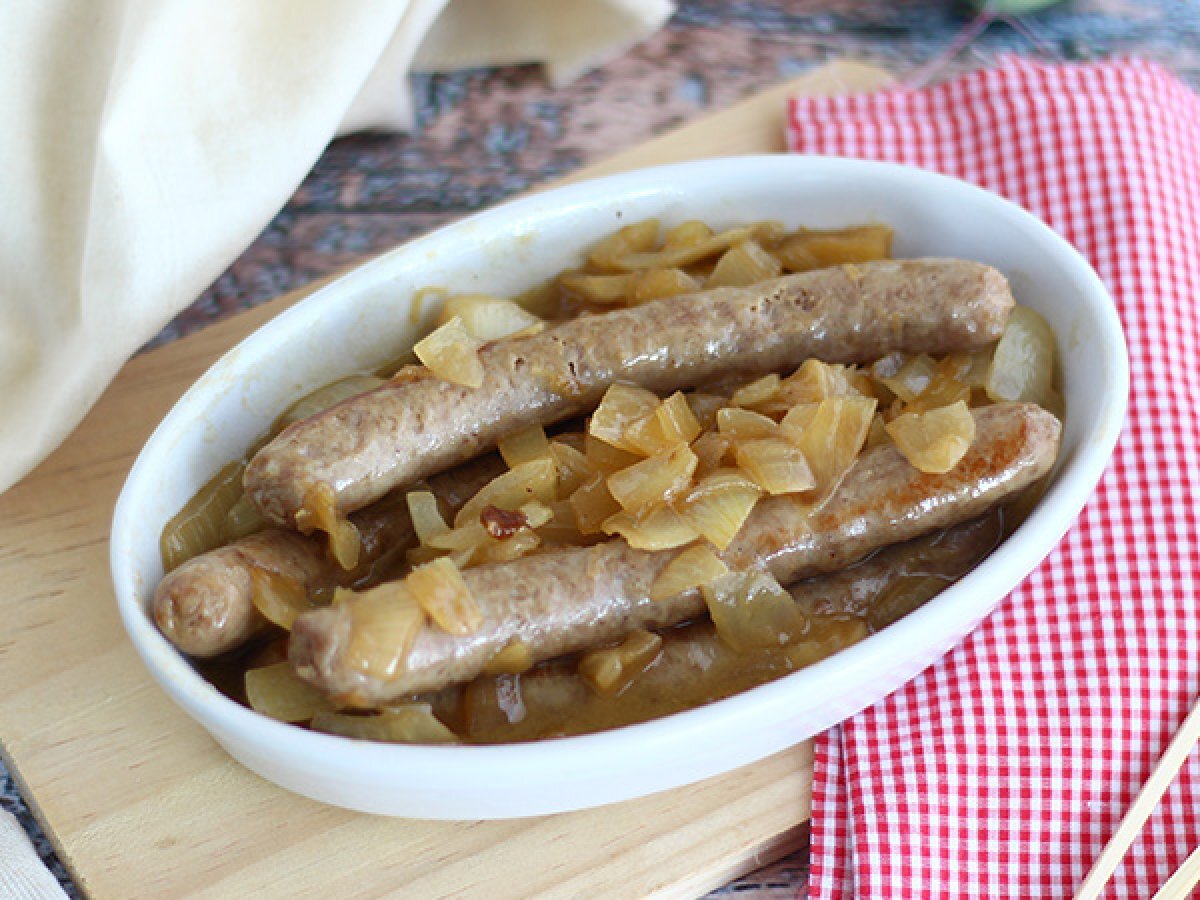 Le salsicce al vino bianco sono pronte. Potete servire intere oppure a bocconcini!