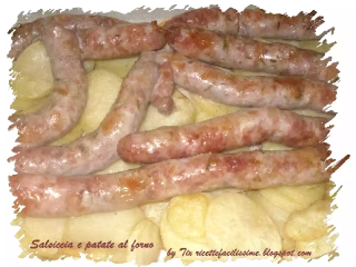 Salsiccia e patate al forno vota adesso Portata principalefacile1 ora Invia questa ricetta ad un amico Stampa la ricetta Contatta l'autore della Ricetta Pubblica la foto di questa ricetta Ingredienti 2 patate un filo d'olio extravergine d'oliva sale aromi tritati a piacere origano pepe rosmarino finocchietto erba cipollina