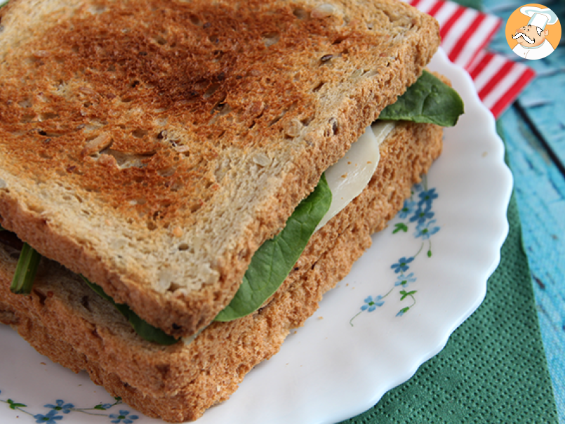 Infine, aggiungete qualche foglia di spinaci sul prosciutto crudo e richiudete il sandwich con l'altra fetta di pane tostata
