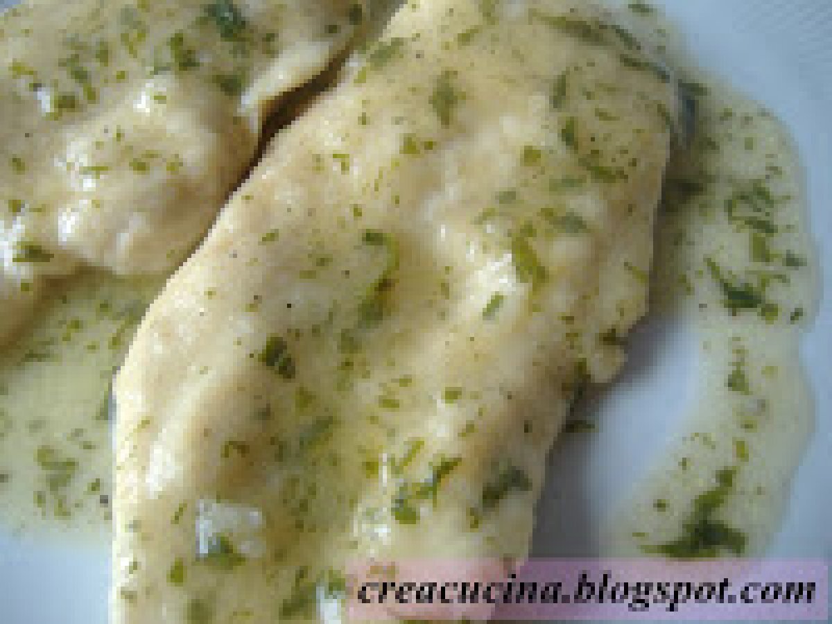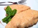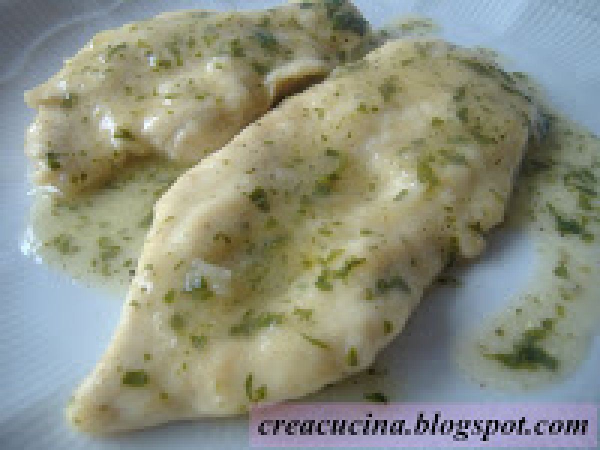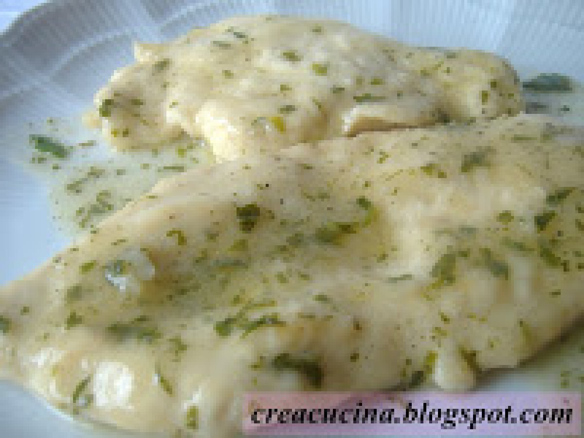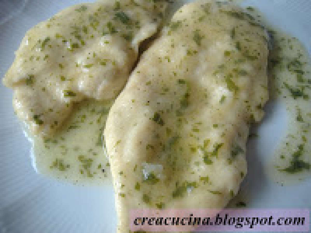 Scaloppine di pollo al prezzemolo PrecedenteProssimo Portata principalefacile30 min297 Kcal Invia questa ricetta ad un amico Stampa la ricetta Contatta l'autore della Ricetta Pubblica la foto di questa ricetta Ingredienti 4 350 g di petto di pollo a fette poca farina 1 spicchio d'aglio 1 tazza di brodo 1 cucchiaio di prezzemolo tritato olio extra vergine di oliva una noce di burro 1/2 bicchiere di vino bianco secco sale e pepe Costo stimato: 5.42Euros€ (1.36€/Porzioni)