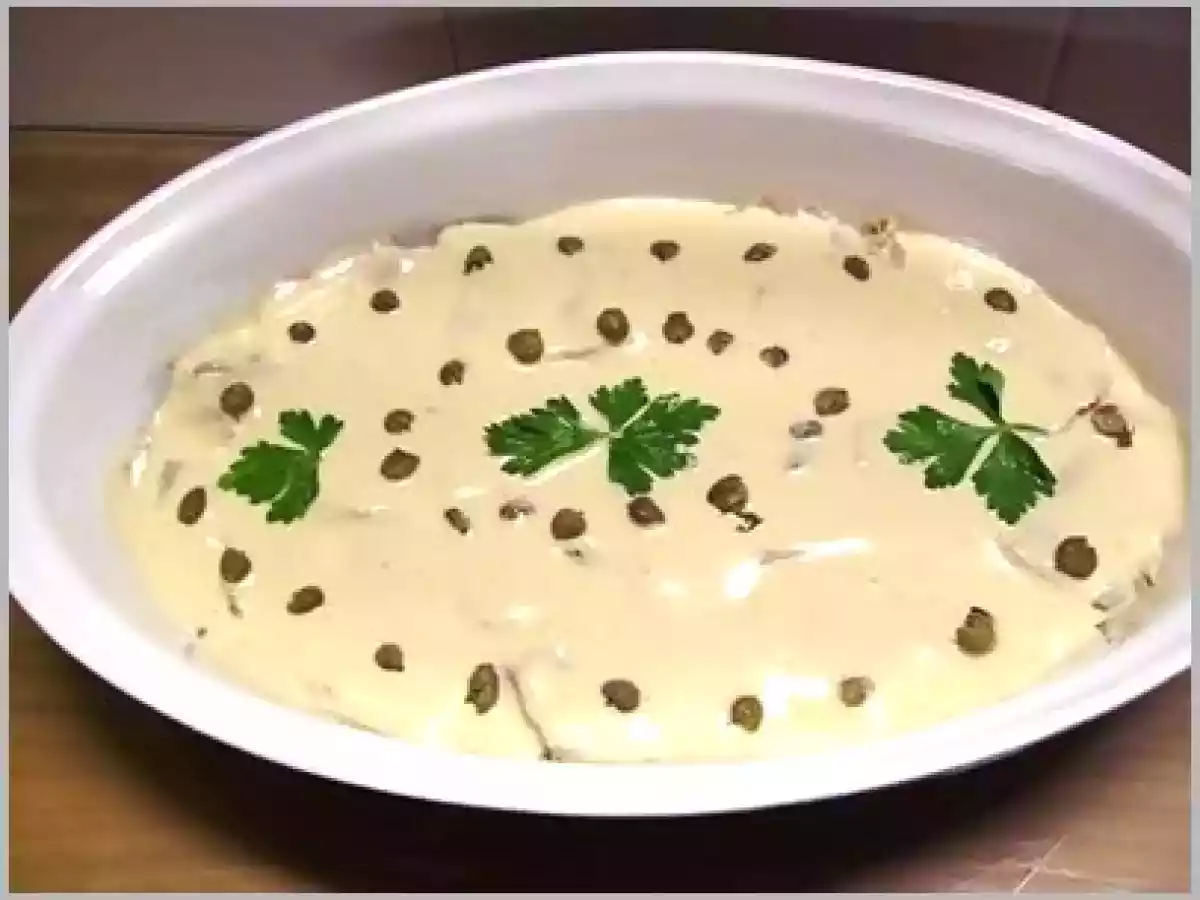 Se vitello tonnato il vitel tonnè, che in italiano diventa il vitello tonnato Portata principalefacile50 min Invia questa ricetta ad un amico Stampa la ricetta Contatta l'autore della Ricetta Pubblica la foto di questa ricetta Ingredienti 4 Per la carne: 1 kg di girello di vitello una cipolla una carota un gambo di sedano uno spicchio d'aglio foglie di prezzemolo alloro rosmarino salvia timo due chiodi di garofano 1-2 bacche di ginepro pepe in grani un litro di vino bianco secco un'acciuga Per la salsa: 4 uova sode 150 g tonno sott'olio mezzo bicchiere olio d?oliva capperi q.b. 3 filetti d'acciuga aceto sale e pepe