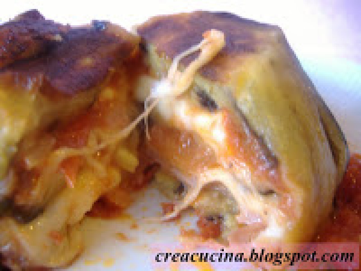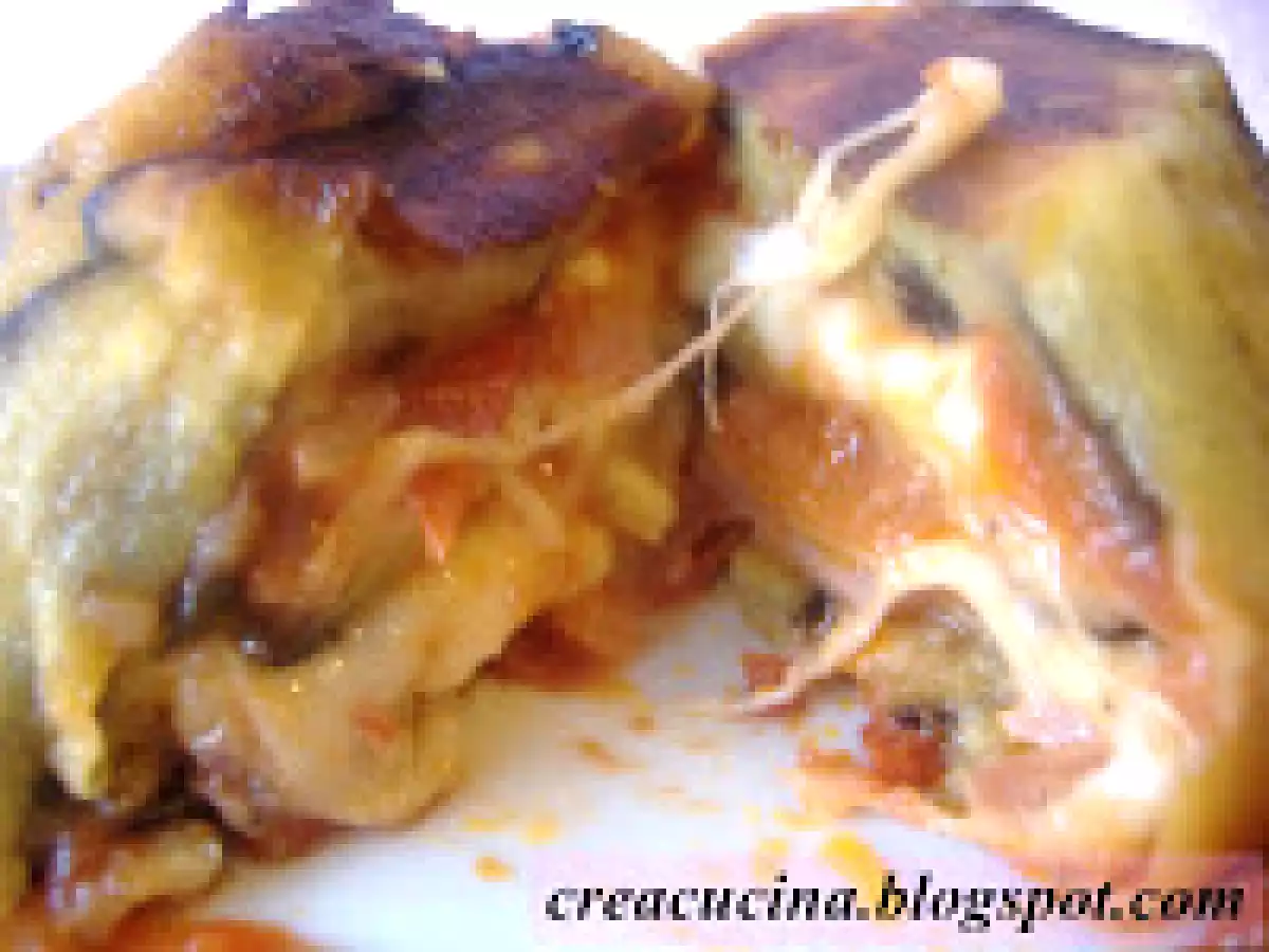 Sformatini di melanzane con cuore morbido filante PrecedenteProssimo Portata principalefacile40 min Invia questa ricetta ad un amico Stampa la ricetta Contatta l'autore della Ricetta Pubblica la foto di questa ricetta Ingredienti 4 3 melanzane lunghe 2 fette di mortadella 1 mozzarella parmigiano grattugiato salsa di pomodoro con abbondante basilico una noce di burro per ungere gli stampini