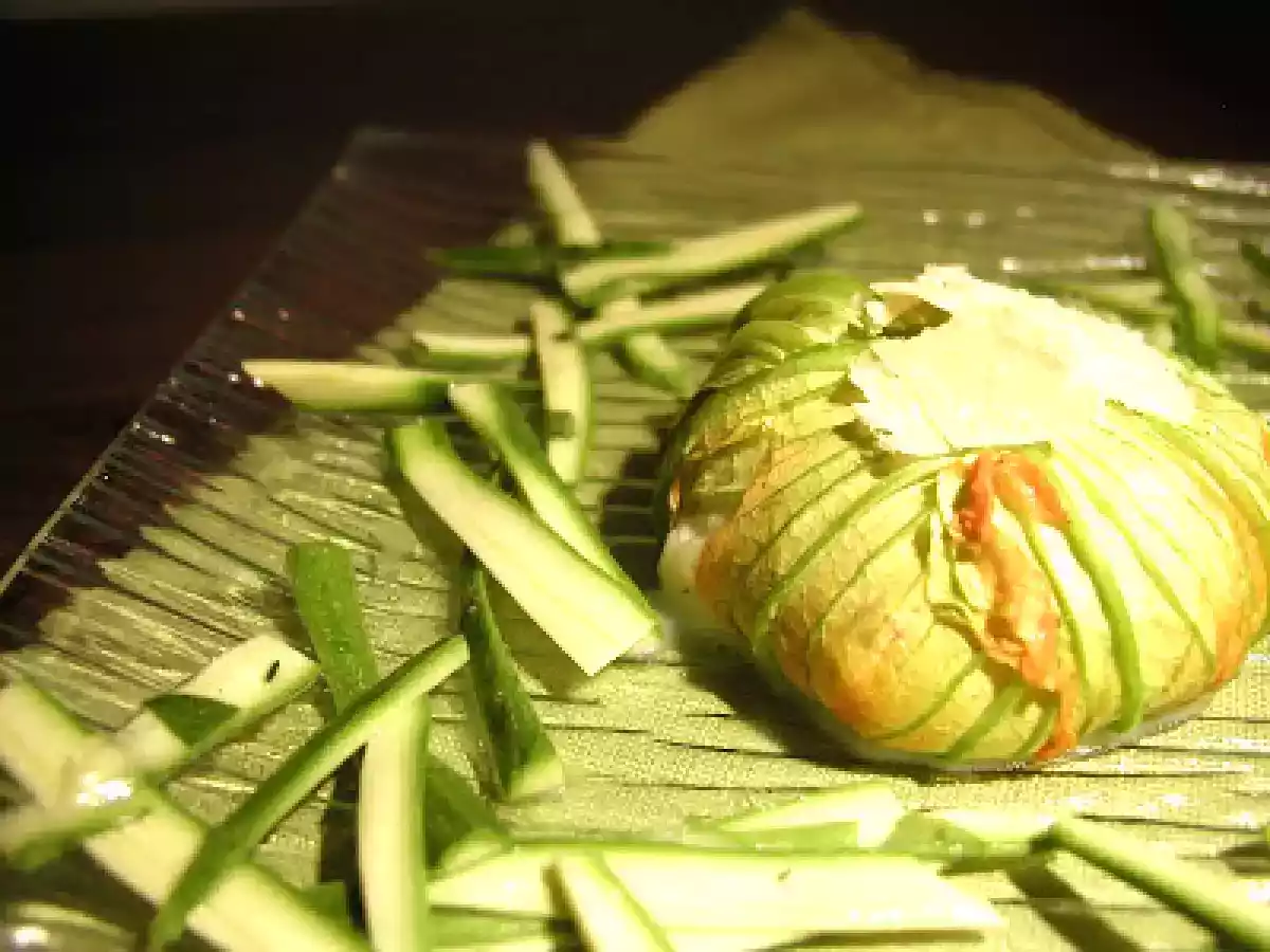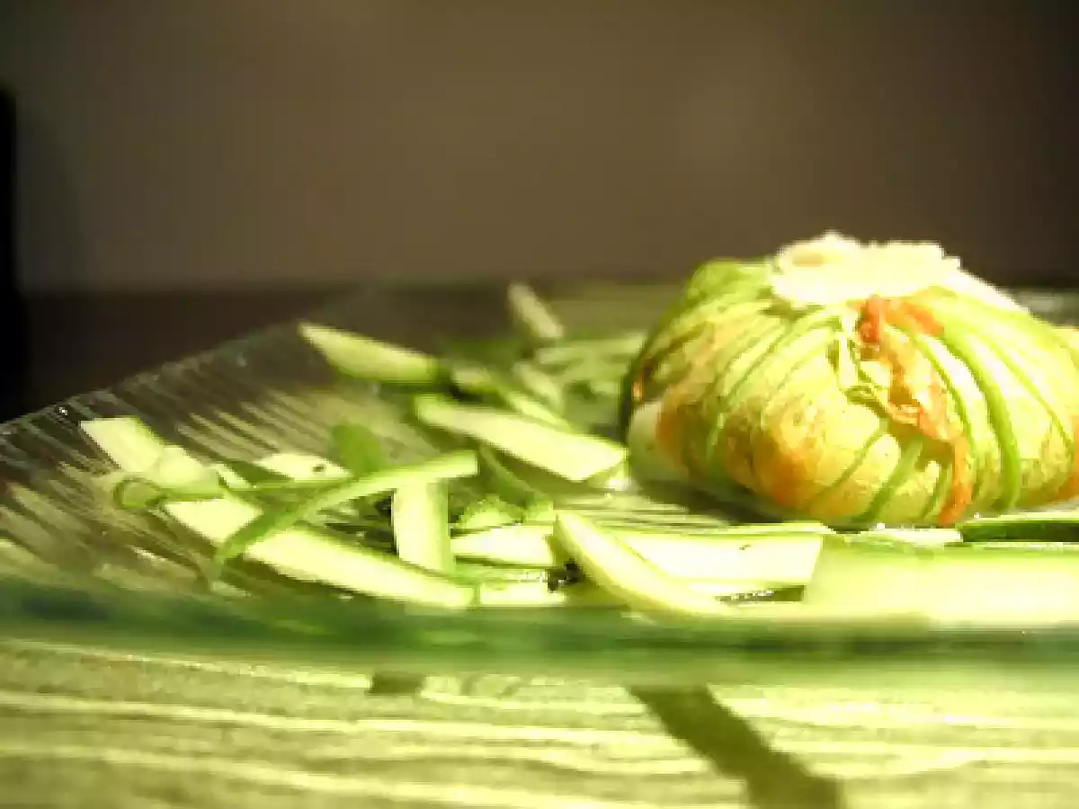 Sformatino di fiori di zucchina, burrata e acciughe con insalatina di zucchine novelle PrecedenteProssimo Portata principalefacile45 min Invia questa ricetta ad un amico Stampa la ricetta Contatta l'autore della Ricetta Pubblica la foto di questa ricetta Un'idea estiva da leccarsi i baffi Ingredienti 2 10 o 12 fiori di zucca 70 g patate bollite e passate 120 g burrata 2 acciughe sott'olio scaglie di parmigiano reggiano sale pepe nero olio e.v.o. basilico prezzemolo timo 1 cucchiaino di porro spadellato Per l'insalatina di zucchine: zucchine novelle 1 spicchio di aglio basilico timo olio e.v.o. sale pepe bianco aceto di Moscato