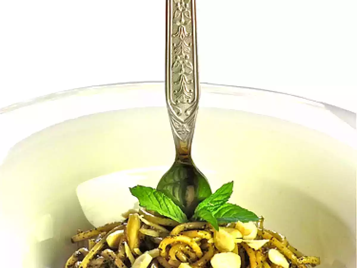 Spaghetti al pesto di menta e mandorle