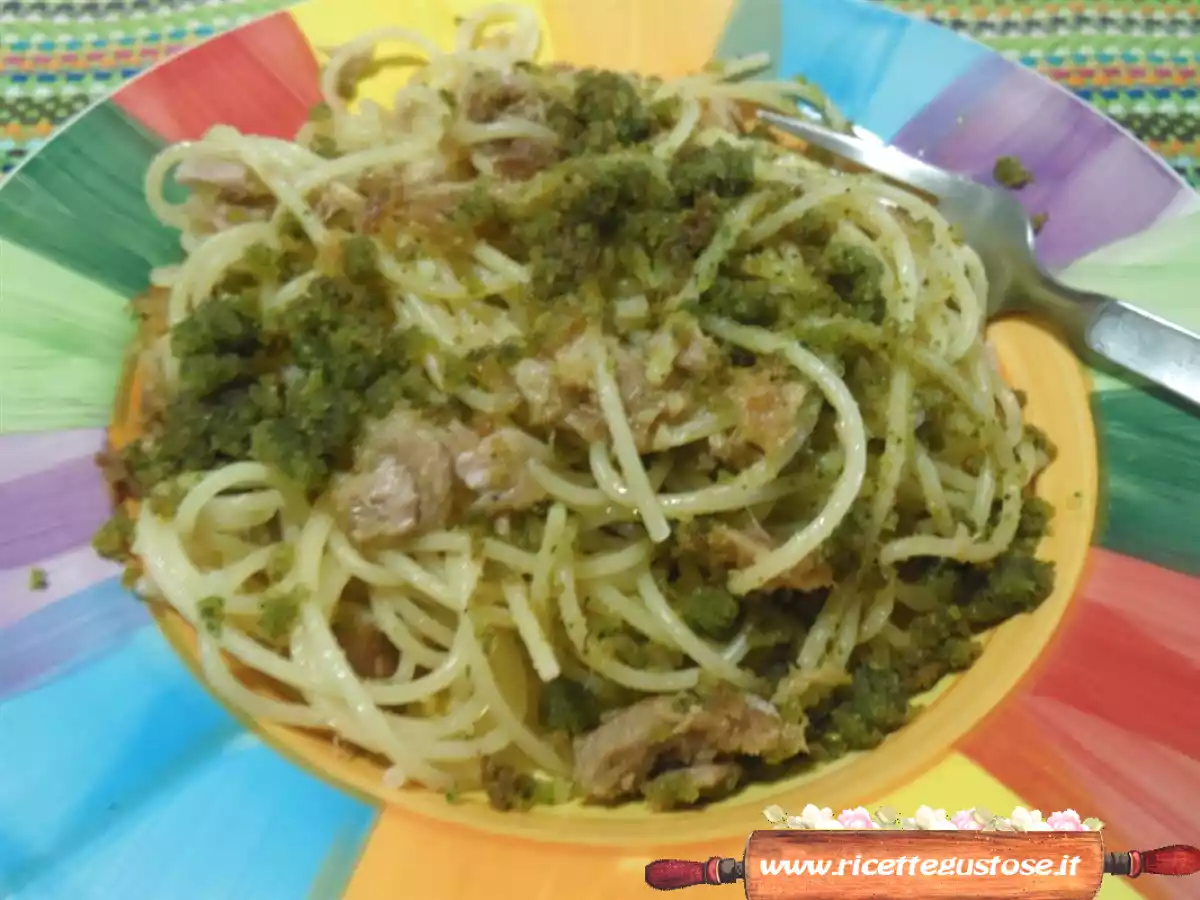 Spaghetti al tonno con pangrattato aromatico