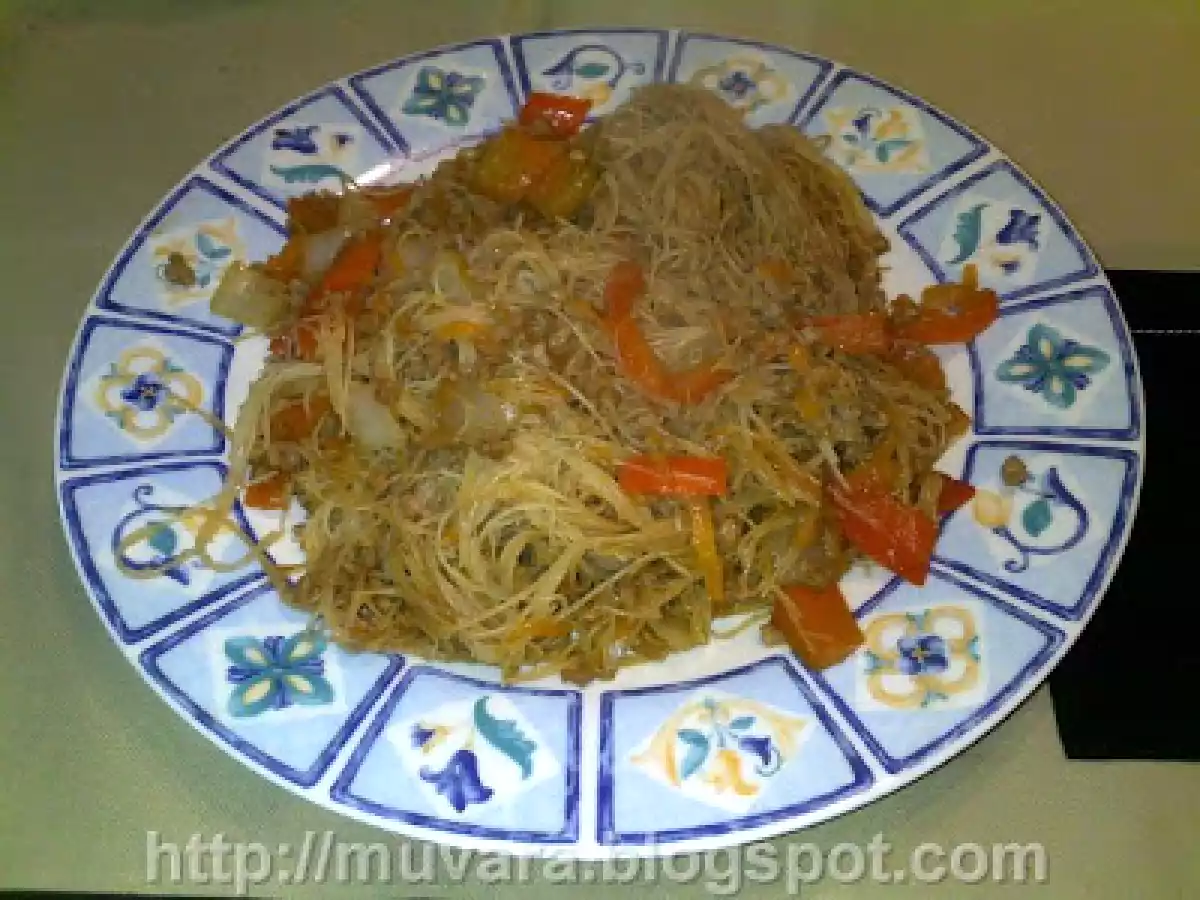 Spaghetti cinesi con carne e verdure vota adesso PrecedenteProssimo Portata principalefacile57 min Invia questa ricetta ad un amico Stampa la ricetta Contatta l'autore della Ricetta Pubblica la foto di questa ricetta Ingredienti 2 1/2 cipolla tagliata in quadrati di circa 2x2 3 carote medie tagliate alla julienne 1/2 peperone grande tagliato in quadrati di circa 3x3 200 g di macinato misto olio extra-vergine d'oliva 2 cucchiai di salsa di soia 100 g di spaghetti cinesi