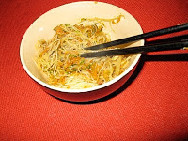 Spaghetti cinesi saltati con verdure Portata principalefacile45 min157 Kcal Invia questa ricetta ad un amico Stampa la ricetta Contatta l'autore della Ricetta Pubblica la foto di questa ricetta Ingredienti 4 una confezione di spaghetti di riso cinesi una confezioni di germogli di soia 4 carote 3 zucchine 1 porro 2 scalogni olio di semi qb salsa di soia sale zenzero Costo stimato: 3.95Euros€ (0.99€/Porzioni)