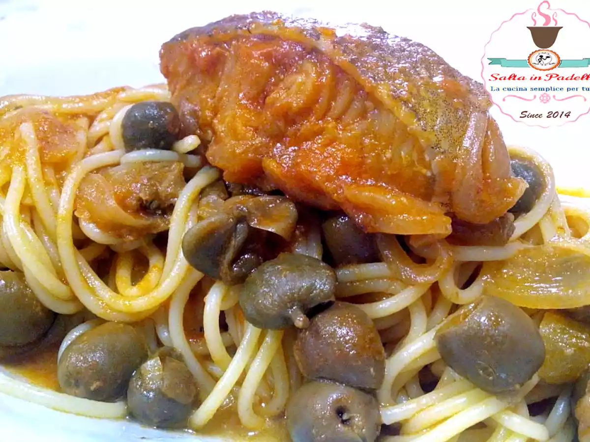Spaghetti con baccalà a ghiotta alla siciliana