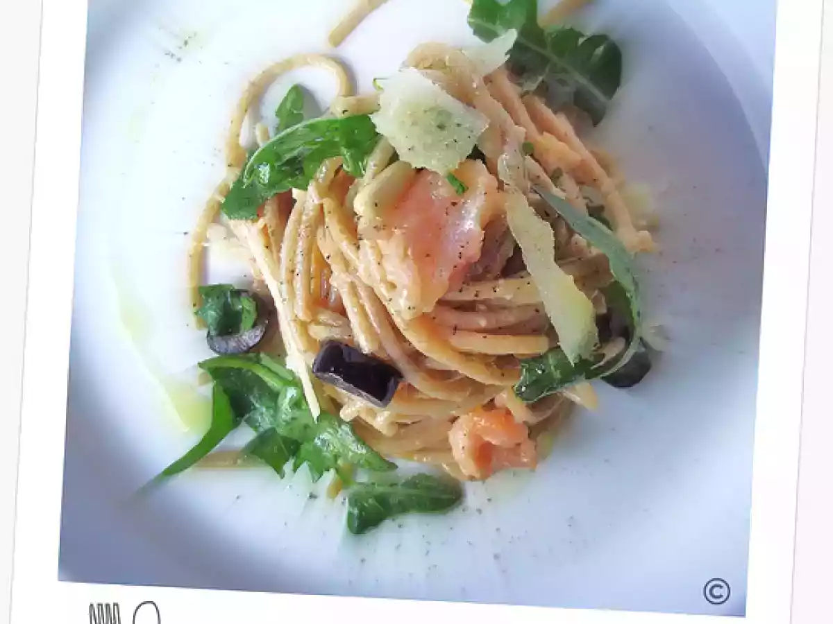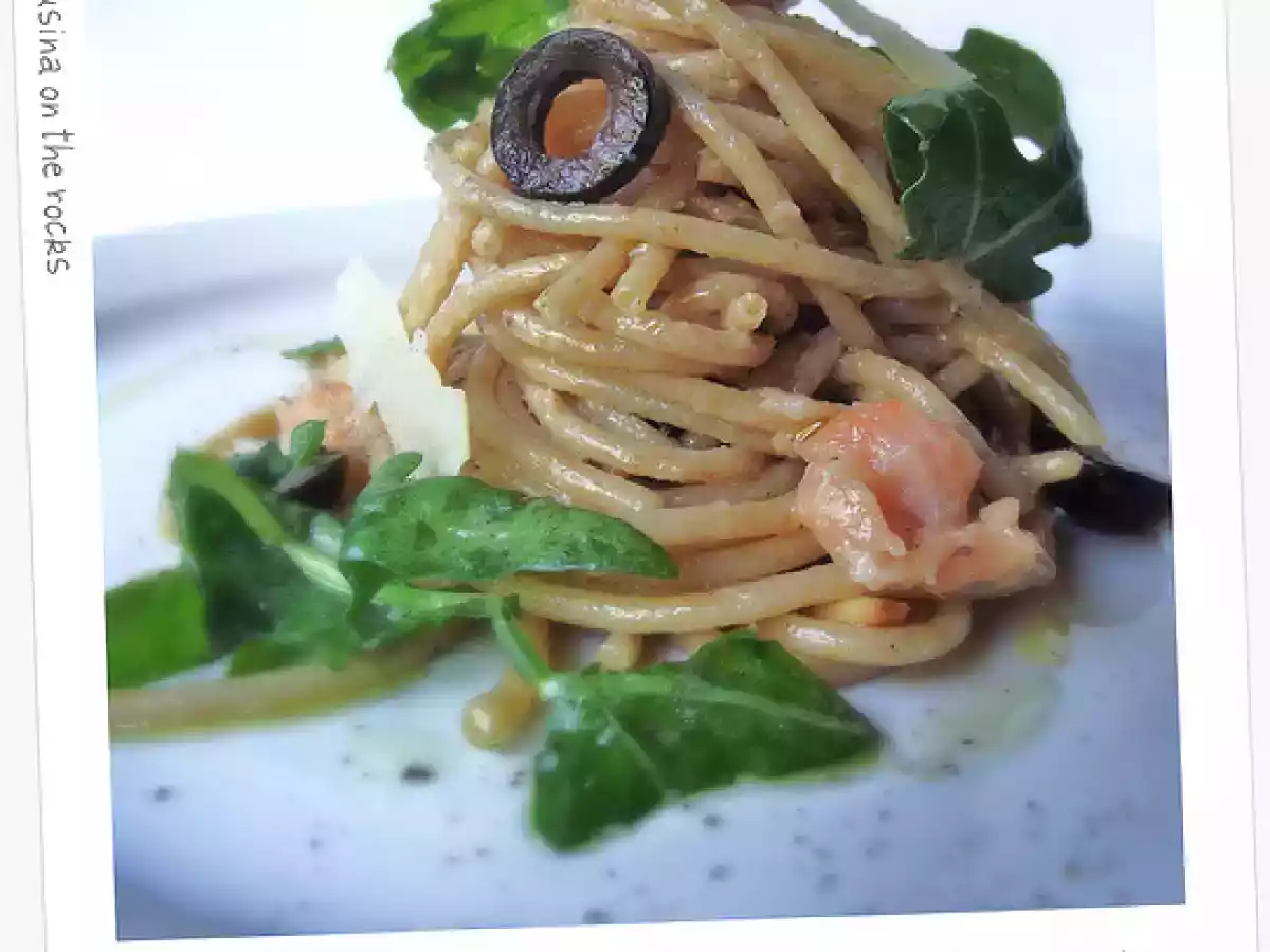 Spaghetti freddi integrali al salmone affumicato vota adesso PrecedenteProssimo Portata principalefacile30 min Invia questa ricetta ad un amico Stampa la ricetta Contatta l'autore della Ricetta Pubblica la foto di questa ricetta Ingredienti 4 270 g di spaghetti integrali 180 g di salmone affumicato 2 manciate di ruchetta 60 g di olive nere denocciolate 40 g di pinoli tostati pecorino sardo (qb) il succo di un lime olio/sale/pepe