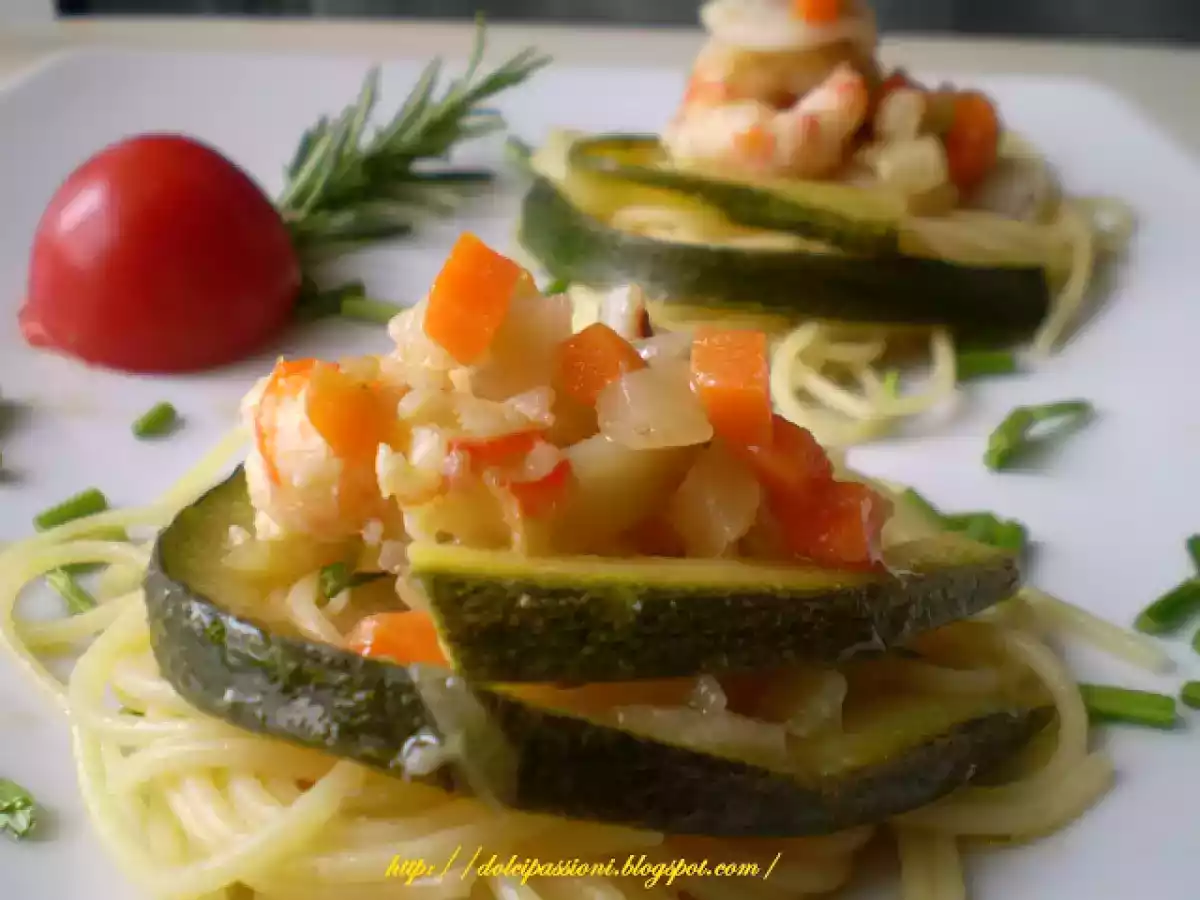 Spaghetti gamberi calamari e pomodorini secchi