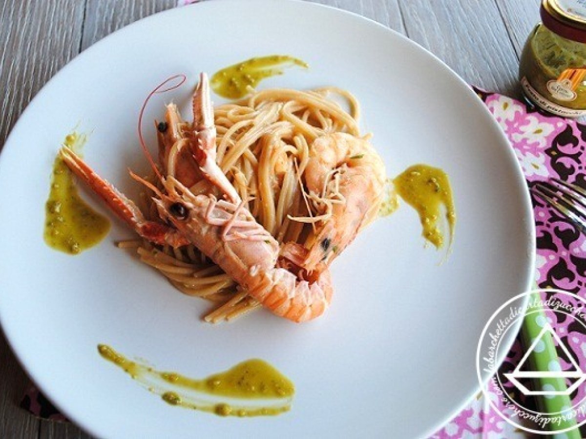 Spaghetti integrali con scampi, mazzancolle e pesto di pistacchi. PrecedenteProssimo Portata principaleDifficile1 h 10 m Invia questa ricetta ad un amico Stampa la ricetta Contatta l'autore della Ricetta Pubblica la foto di questa ricetta Un primo particolare che dà grande soddisfazione Ingredienti 4 500 g di mazzancolle tropicali 200 g scampi sale q.b. olio evo q.b. 1 cipolla 1 carota 1 gambo di sedano 1 cucchiaio di farina 1 manciata di prezzemolo tritato 1 cucchiaio di burro 2 cucchiai di pesto di pistacchi "Cascina San Cassiano" + qualche puntina per decorare 350 g spaghetti integrali