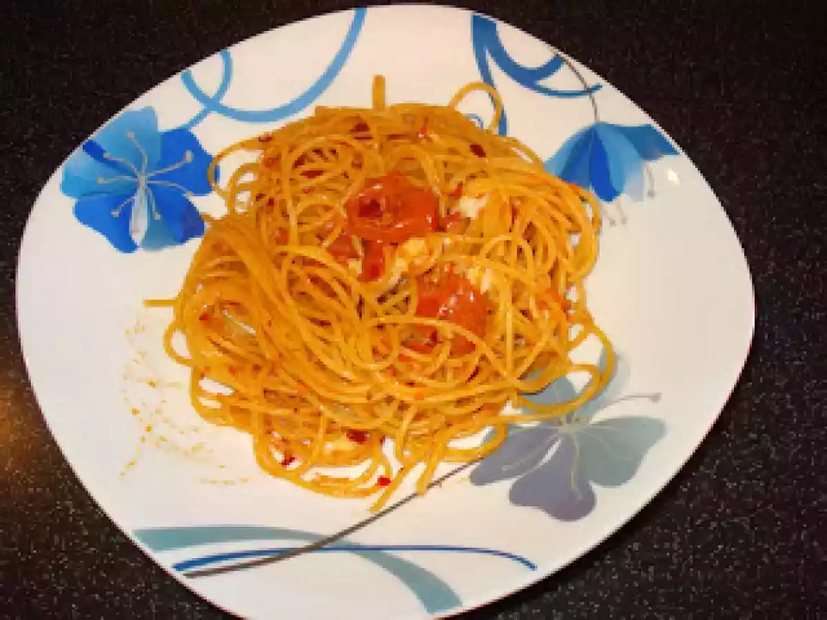 Spaghetti pachino, 'nduja e scamorza Portata principalefacile35 min Invia questa ricetta ad un amico Stampa la ricetta Contatta l'autore della Ricetta Pubblica la foto di questa ricetta Ingredienti 2 200-250 g di spaghettini 12-15 pomodorini pachino 1 fetta di 'nduja 2 fette di scamorza tagliata a cubetti olio e sale