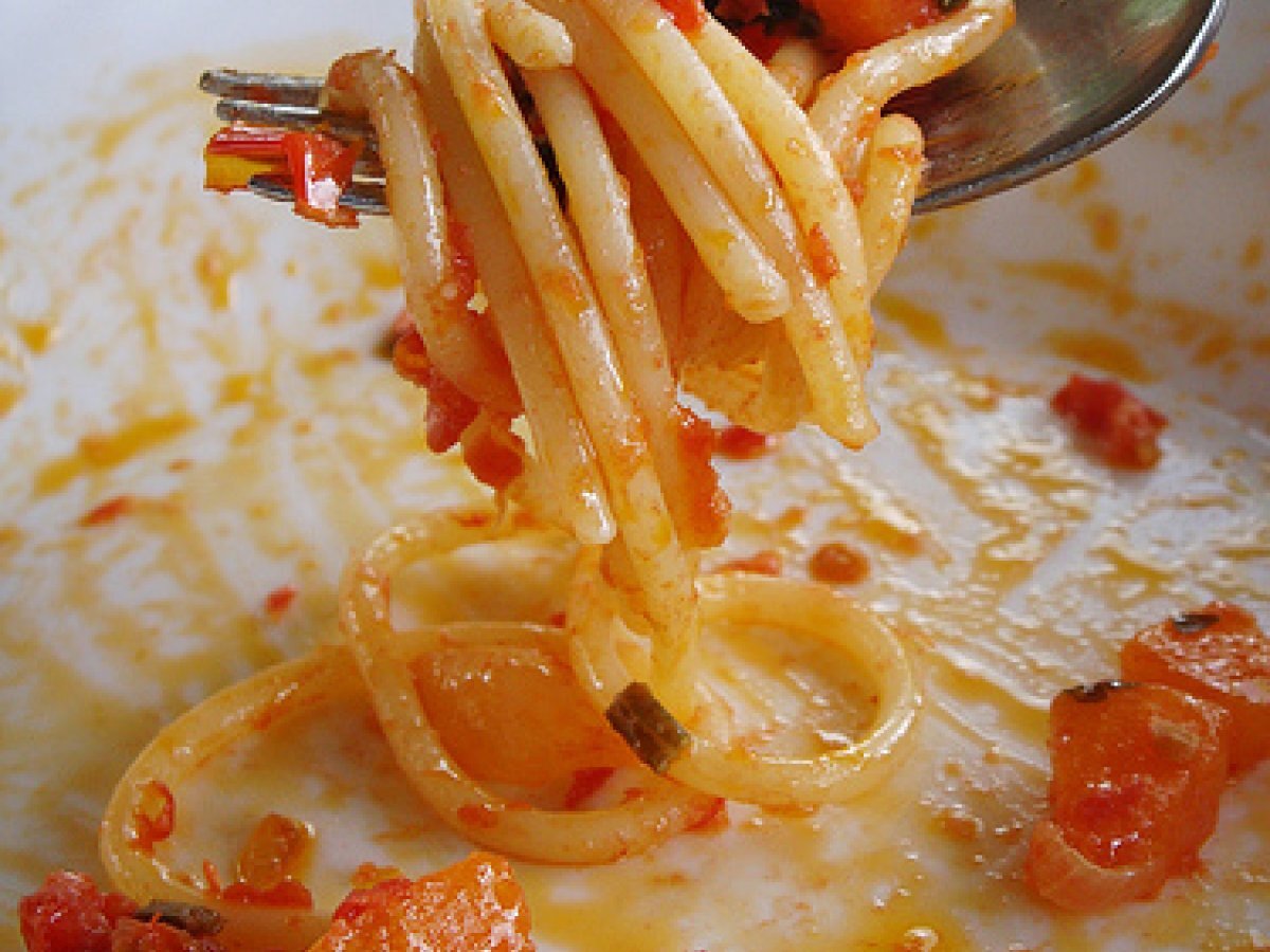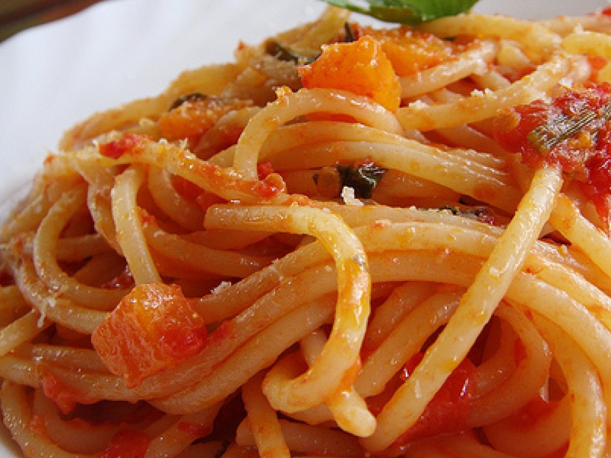 Spaghetti saltati vota adesso PrecedenteProssimo Portata principalefacile30 min Invia questa ricetta ad un amico Stampa la ricetta Contatta l'autore della Ricetta Pubblica la foto di questa ricetta Ingredienti 4 400 g spaghetti 1 cipolla piccola 1 carota 3 gambetti di sedano 8 pomodori San Marzano abbondante parmiggiano olio evo sale peperoncinio