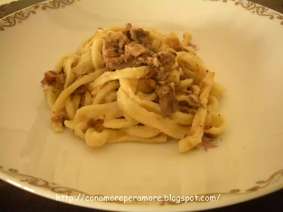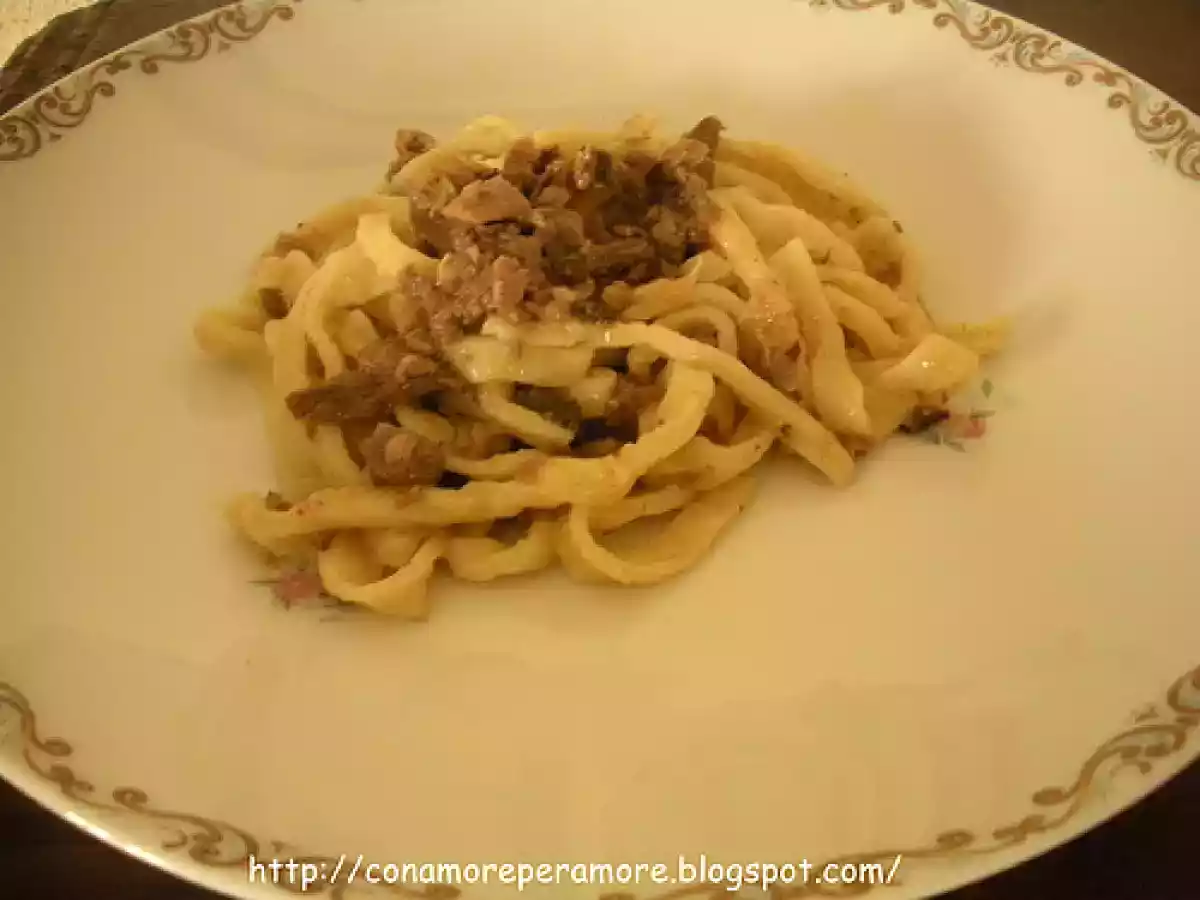 Spaghettoni di pasta fresca al ragu' d'anatra PrecedenteProssimo Portata principalefacile45 min Invia questa ricetta ad un amico Stampa la ricetta Contatta l'autore della Ricetta Pubblica la foto di questa ricetta Ingredienti 2 L'anatra un pò di fondo di cottura dell'anatra un giro di olio extravergine di oliva qualche cucchiaio di acqua