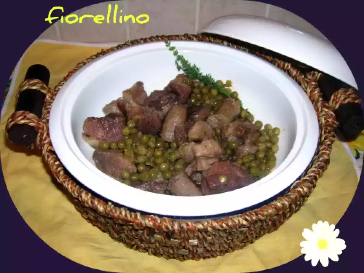 Spezzatino di maiale con piselli Portata principalefacile35 min Invia questa ricetta ad un amico Stampa la ricetta Contatta l'autore della Ricetta Pubblica la foto di questa ricetta Ingredienti 4 600 g di spezzatino di maiale 1 scatola di piselli 1 spicchio di aglio 1 rametto di timo fresco 1 bicchiere di vino rosso olio, sale e pepe