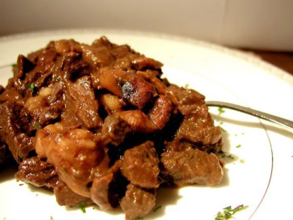 Spezzatino di manzo con marroni, porcini e salsa di soia vota adesso Portata principalefacile55 min Invia questa ricetta ad un amico Stampa la ricetta Contatta l'autore della Ricetta Pubblica la foto di questa ricetta Ingredienti 2 400 g polpa per spezzatino 250 g marroni 70 g cipolla bionda 20 g funghi porcini secchi 1 rametto di rosmarino e qlc. foglia di salvia 1 foglia di alloro 2 bacche di ginepro salsa di soia sale pepe nero olio extravergine di oliva brodo 1 spicchio aglio 1 cucchiaio porto