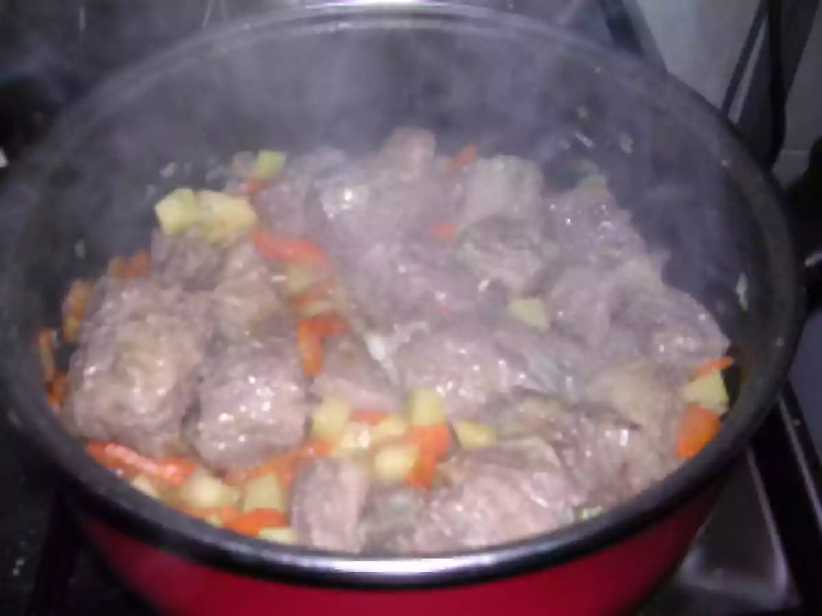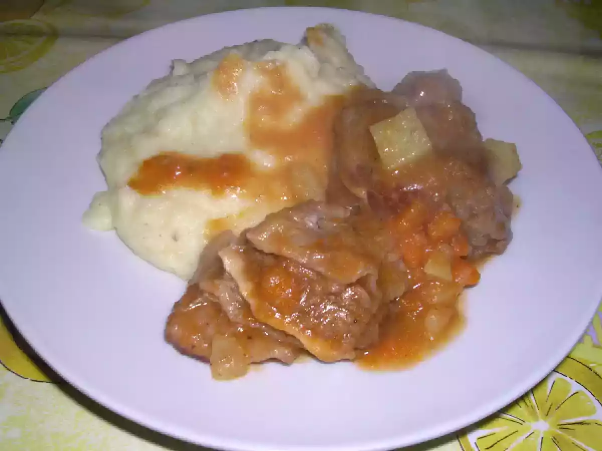 Spezzatino di manzo in crema di patate e carote vota adesso PrecedenteProssimo Portata principalefacile50 min Invia questa ricetta ad un amico Stampa la ricetta Contatta l'autore della Ricetta Pubblica la foto di questa ricetta Ingredienti 4 400 g bocconcini di manzo leggermente grassi 3 patate medie 2 carote 1 costa di sedano 1 scalogno 2 cucchiai di salsa di pomodoro brodo vegetale,almeno 300 ml