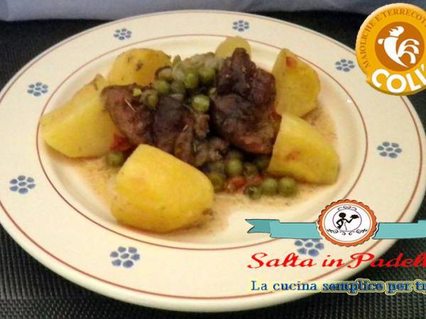 Ciao a tutti, oggi vi propongo un secondo piatto gustoso, spezzatino di tacchino al forno, con patate piselli e vino bianco. Per servire questo gustoso spezzatino ho utilizzato il “Piatto Piano” Linea Fiorina della straordinaria Azienda Colì, che realizza oggetti d’arredo, stoviglie, pirofile e arredo giardino tutto fatto rigorosamente in Italia.