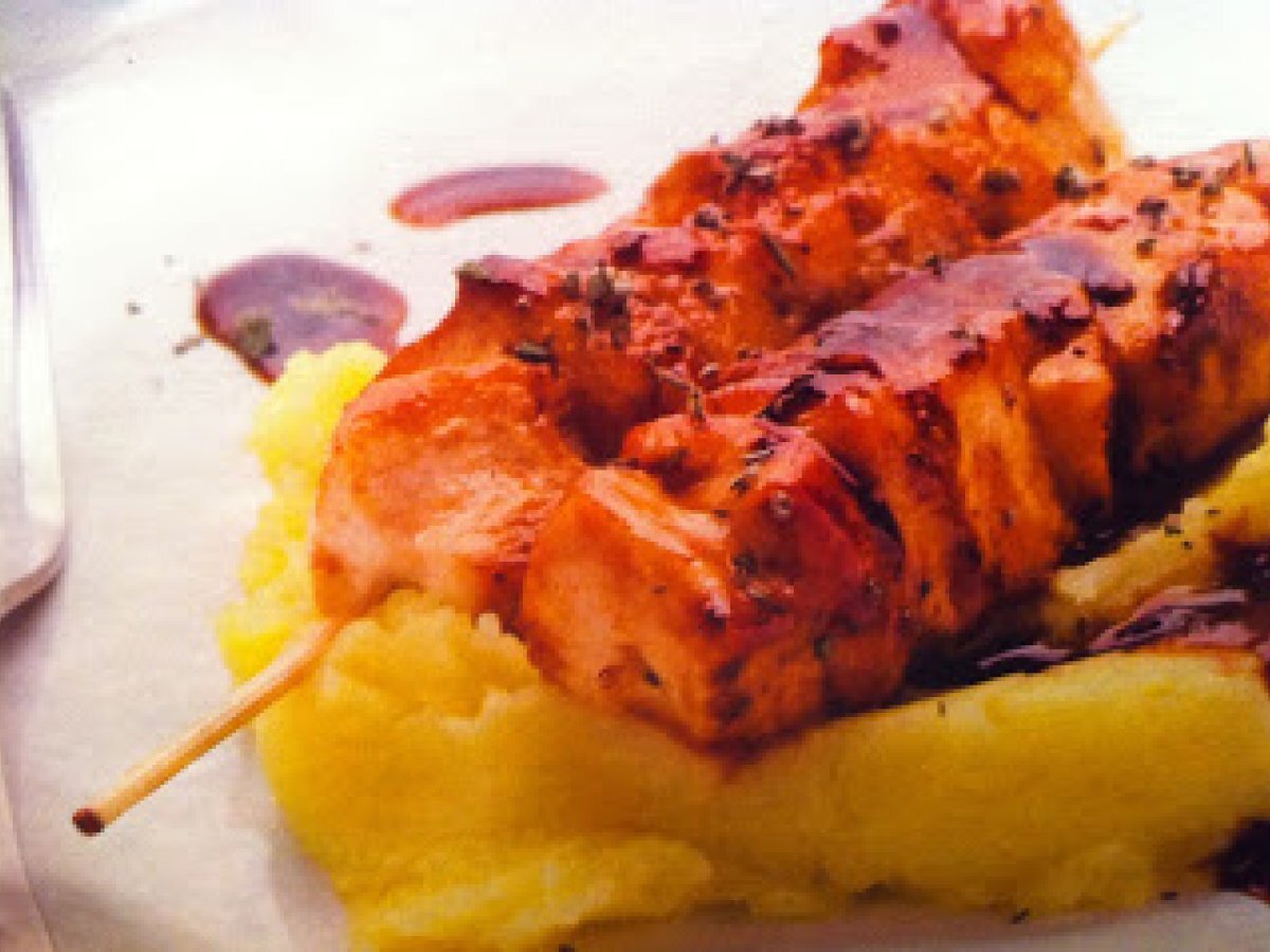 Spiedini di pollo glassati al miele