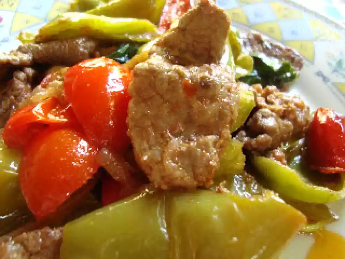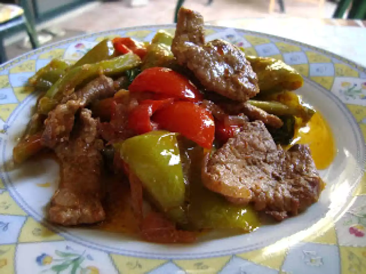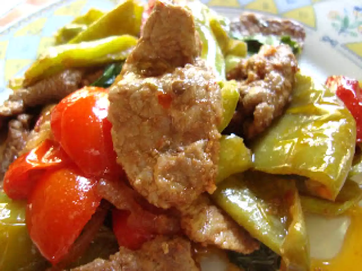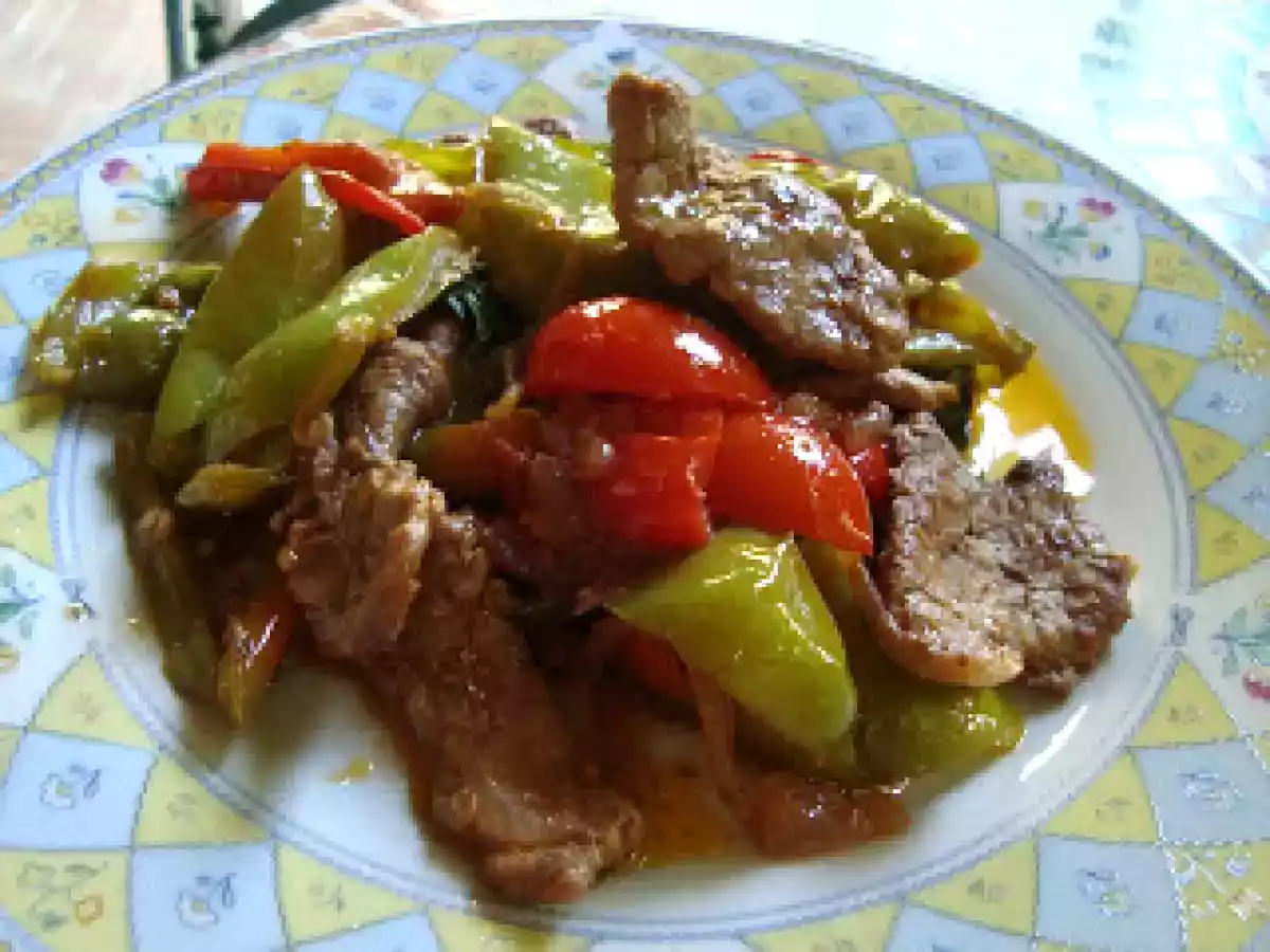 Straccetti di carne alla 'nduja PrecedenteProssimo Portata principalefacile35 min242 Kcal Invia questa ricetta ad un amico Stampa la ricetta Contatta l'autore della Ricetta Pubblica la foto di questa ricetta Ingredienti 4 4 fettine di vitello 1 peperone verde 10 pomodori ciliegina tagliati a quattro 1 cipolla tagliata grossolanamente sale e olio evo vino bianco 1 cucchiaino di 'nduja Costo stimato: 8.39Euros€ (2.1€/Porzioni)