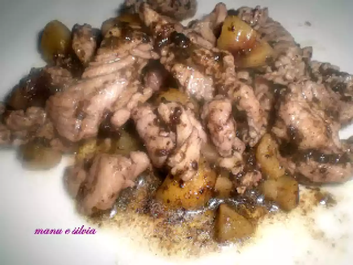 Straccetti di tacchino al profumo di tartufo Portata principalefacile50 min415 Kcal Invia questa ricetta ad un amico Stampa la ricetta Contatta l'autore della Ricetta Pubblica la foto di questa ricetta Ingredienti 3 520 g petto di tacchino a fette 104 g salsa al tartufo nero di Norcia 200 g castagne già lessate olio extravergine di oliva vino rosso sale