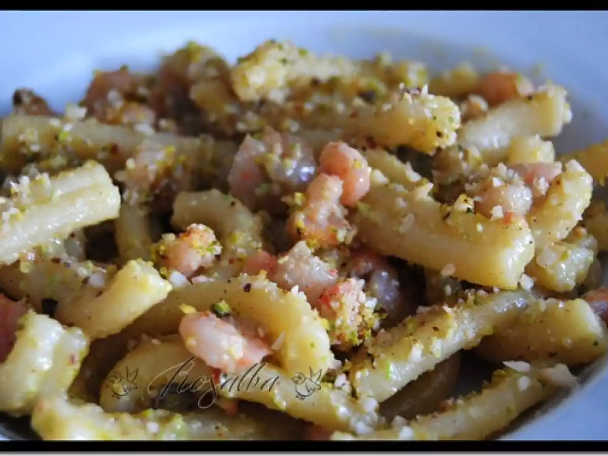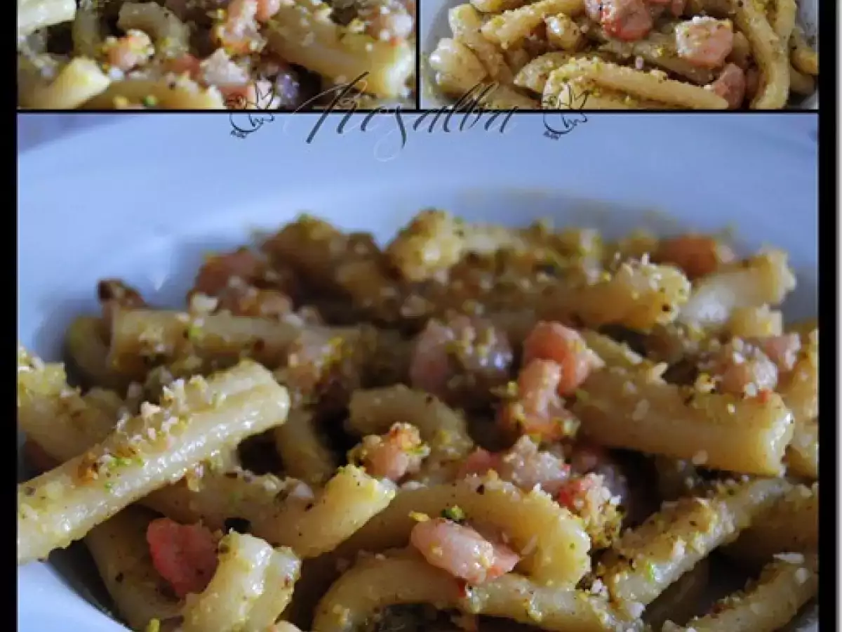 Strozzapreti con gamberi e pesto di pistacchi e mandorle PrecedenteProssimo Portata principalefacile50 min813 Kcal Invia questa ricetta ad un amico Stampa la ricetta Contatta l'autore della Ricetta Pubblica la foto di questa ricetta Ingredienti 4 350 g Strozzapreti freschi 300 g di gamberi freschi 2 cucchiai di pesto di pistacchi e mandorle 1 spicchio d aglio 1 bicchiere di vino bianco olio extravergine di oliva sale pepe nero mandorle a scaglie granella di pistacchio viene preparato con : 150 g di pistacchi di Bronte 20 g di mandorle spellate 1 spicchio d aglio minuscolo sale pepe nero olio di semi o evo a voi la scelta Costo stimato: 11.23Euros€ (2.81€/Porzioni)