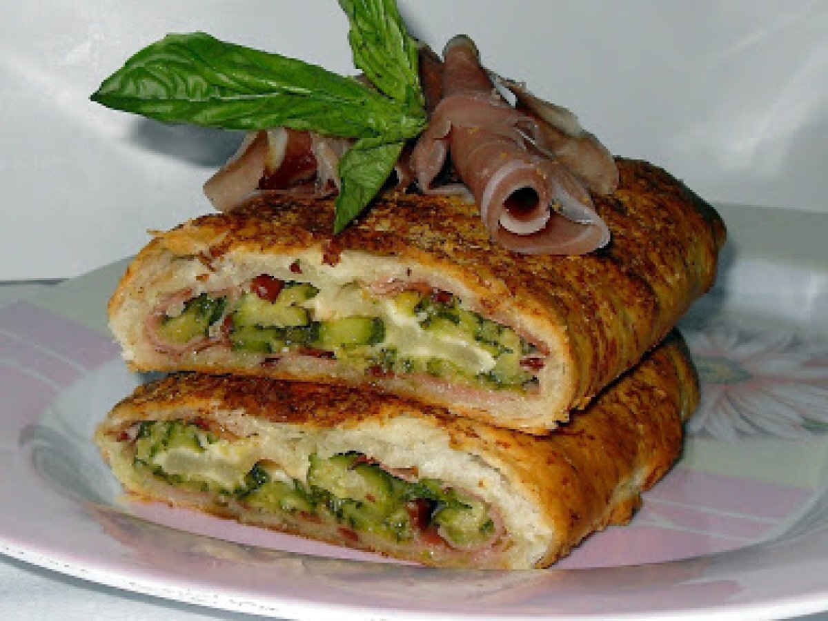 Strudel con speck e zucchine PrecedenteProssimo Portata principalefacile30 min959 Kcal Invia questa ricetta ad un amico Stampa la ricetta Contatta l'autore della Ricetta Pubblica la foto di questa ricetta Questo è un mezzo per fare mangiare gli zucchini ai bambini. Ingredienti 2 3 zucchine 1 rotolo si sfoglia 80 g di scamorza a fette sottili 100 g di speck Parmigiano Costo stimato: 6.15Euros€ (3.08€/Porzioni)