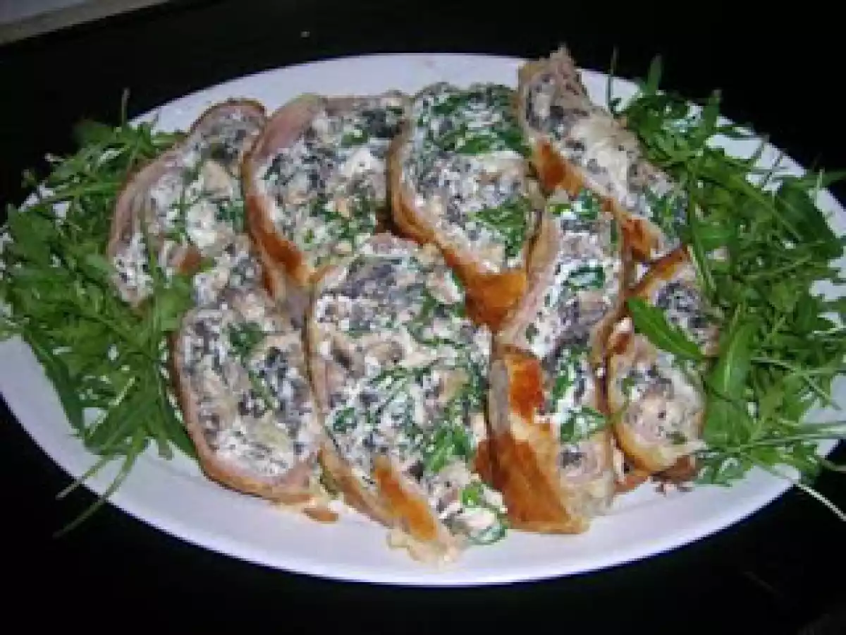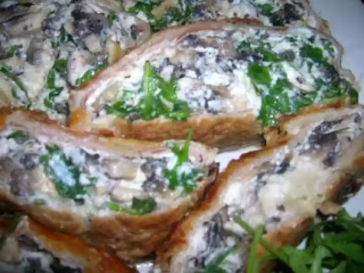 Strudel di funghi, ricotta e rucola PrecedenteProssimo Portata principalefacile55 min Invia questa ricetta ad un amico Stampa la ricetta Contatta l'autore della Ricetta Pubblica la foto di questa ricetta Ingredienti 4 500 g di funghi 500 g di ricotta 50 g di rucola 3 fette di prosciutto cotto 1 rotolo di pasta sfoglia 1 uovo sale e pepe q.b.
