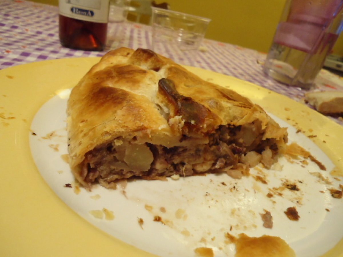 e lo fate cuocere ed asciugare completamente. Quando il radicchio è pronto schiacciate all'interno della padella le due patate lesse e fatele amalgamare con il radicchio, e poi spegnete. Ricordatevi sempre di girare e controllare la fonduta. Mettete il radicchio nella ciotola con l'asiago e aggiungete l'uovo per amalgamare e parecchio parmigiano o grana. Aprite il disco di pasta sfoglia e lo lasciate nella sua carta forno, all'interno ci versate il composto (anche se è troppo abbondante va bene uguale)e lo distribuite in modo che riusciate a chiudere bene il disco arrotolandolo.