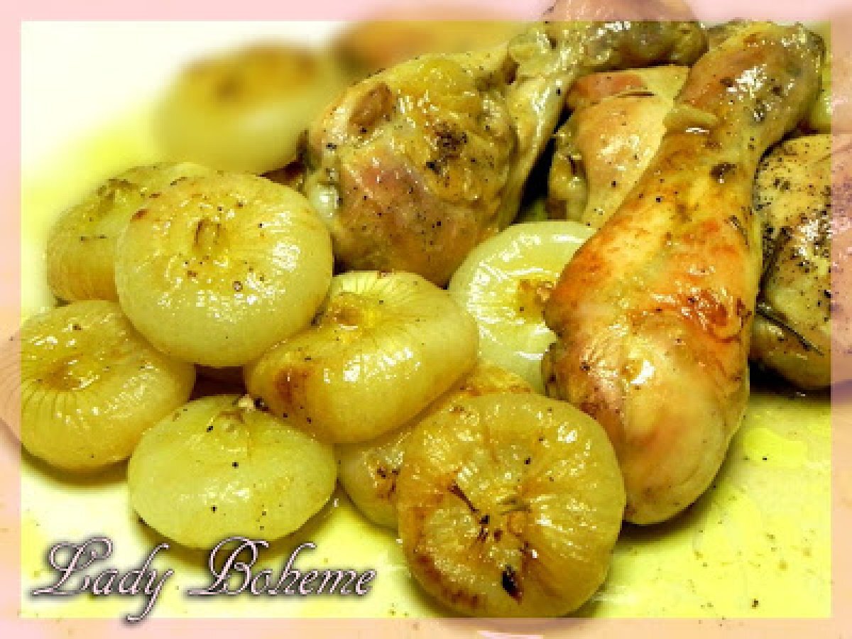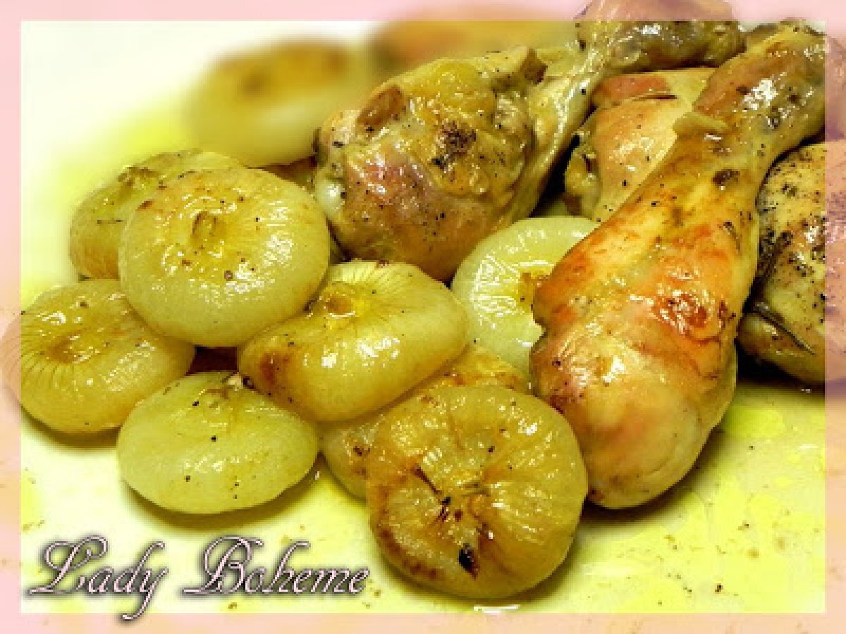 Sulle ali del passato e i fusi di pollo allo spumante con cipolle borettane - premi PrecedenteProssimo Portata principalefacile55 min Invia questa ricetta ad un amico Stampa la ricetta Contatta l'autore della Ricetta Pubblica la foto di questa ricetta Ingredienti 4 4 fusi di pollo 400 g di cipolle borettane olio evo erba cipollina qb un trito di aglio salvia e rosmarino un bicchiere di spumante sale pepe nero