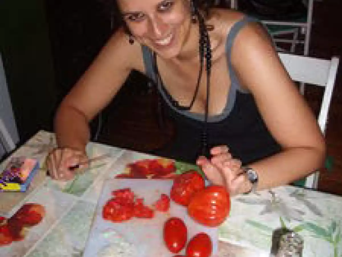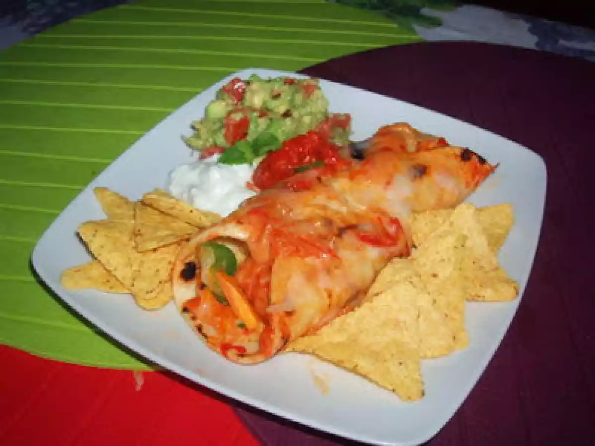 Tacos de pollo, guacamole & co. PrecedenteProssimo Portata principalefacile1 h 10 m Invia questa ricetta ad un amico Stampa la ricetta Contatta l'autore della Ricetta Pubblica la foto di questa ricetta Ingredienti 2 2 pomodori gustosi e maturi due fette di cipolla tritate un pò di aglio 1 lime sale menta prezzemolo Per le tortillas: 150 g farina grano tenero tipo "0" 100 g farina grano duro Acqua mezzo cucchiaio sale grosso Farcia: salsa di pomodoro purea di fagioli pollo arrosto formaggio tipo montasio o asiago panna acida