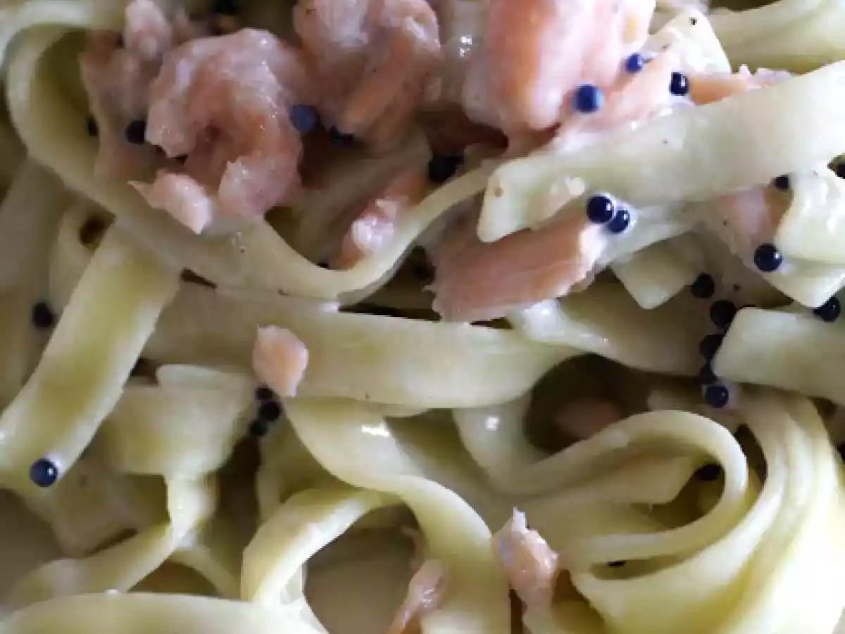 Tagliatelle al salmone affumicato e caviale Portata principalefacile35 min Invia questa ricetta ad un amico Stampa la ricetta Contatta l'autore della Ricetta Pubblica la foto di questa ricetta Ingredienti 4 300 g di tagliatelle all'uovo 150 g di salmone affumicato 3 cucchiaini di caviale 100 ml di panna liquida pepe nero