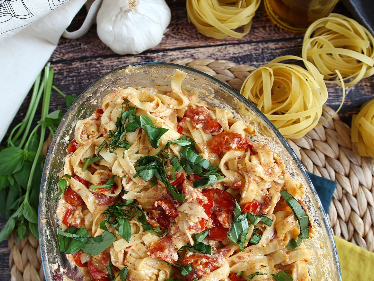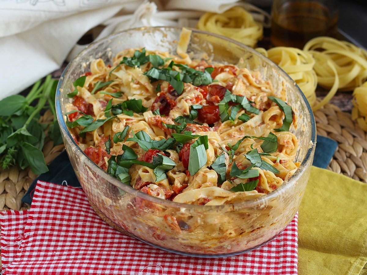 Tagliatelle con feta e pomodorini - baked feta pasta