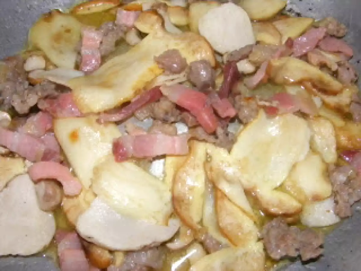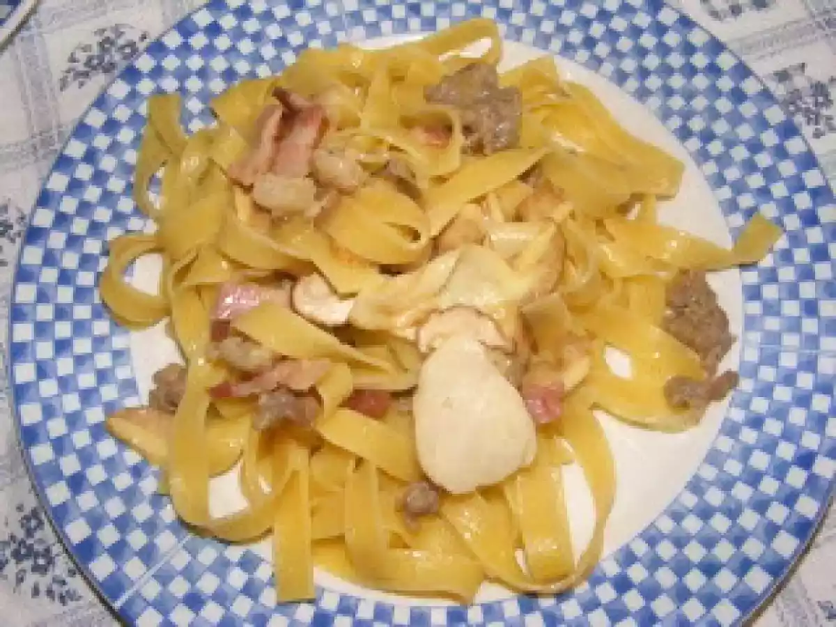 Tagliatelle salsiccia fresca pancetta e funghi porcini