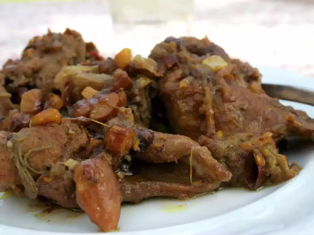 Tajine di coniglio al rabarbaro PrecedenteProssimo Portata principalefacile1 h 15 m Invia questa ricetta ad un amico Stampa la ricetta Contatta l'autore della Ricetta Pubblica la foto di questa ricetta Una ricetta molto particolare, dal sapore agrodolce. Da provare assolutamente! Ingredienti 4 850 g di coniglio a pezzi 200 g di rabarbaro pulito e tagliato a pezzi di 2 cm circa 1 cipolla 2 manciate di mandorle spezzettate molto grossolanamente 2 manciate di uvetta 1 lime o limone confit olio Evo 1 peperoncino piccante 2 cucchiaini di ras el hanout 2 cucchiaini di berberè 2 cucchiaini di curcuma 3 cucchiaini di sale 2 cucchiaini di harissa in polvere 2 cucchiaini di amchur