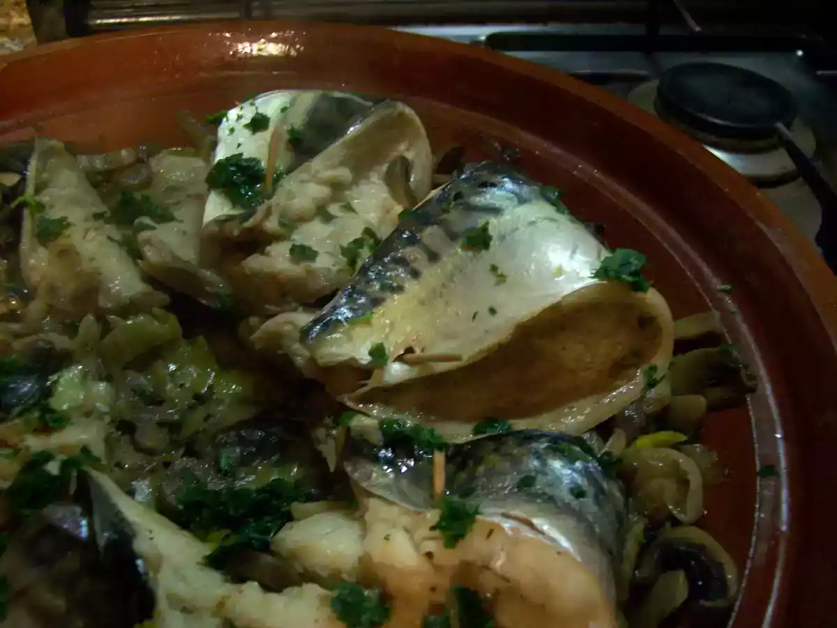 Tajine di sgombri ai funghi
