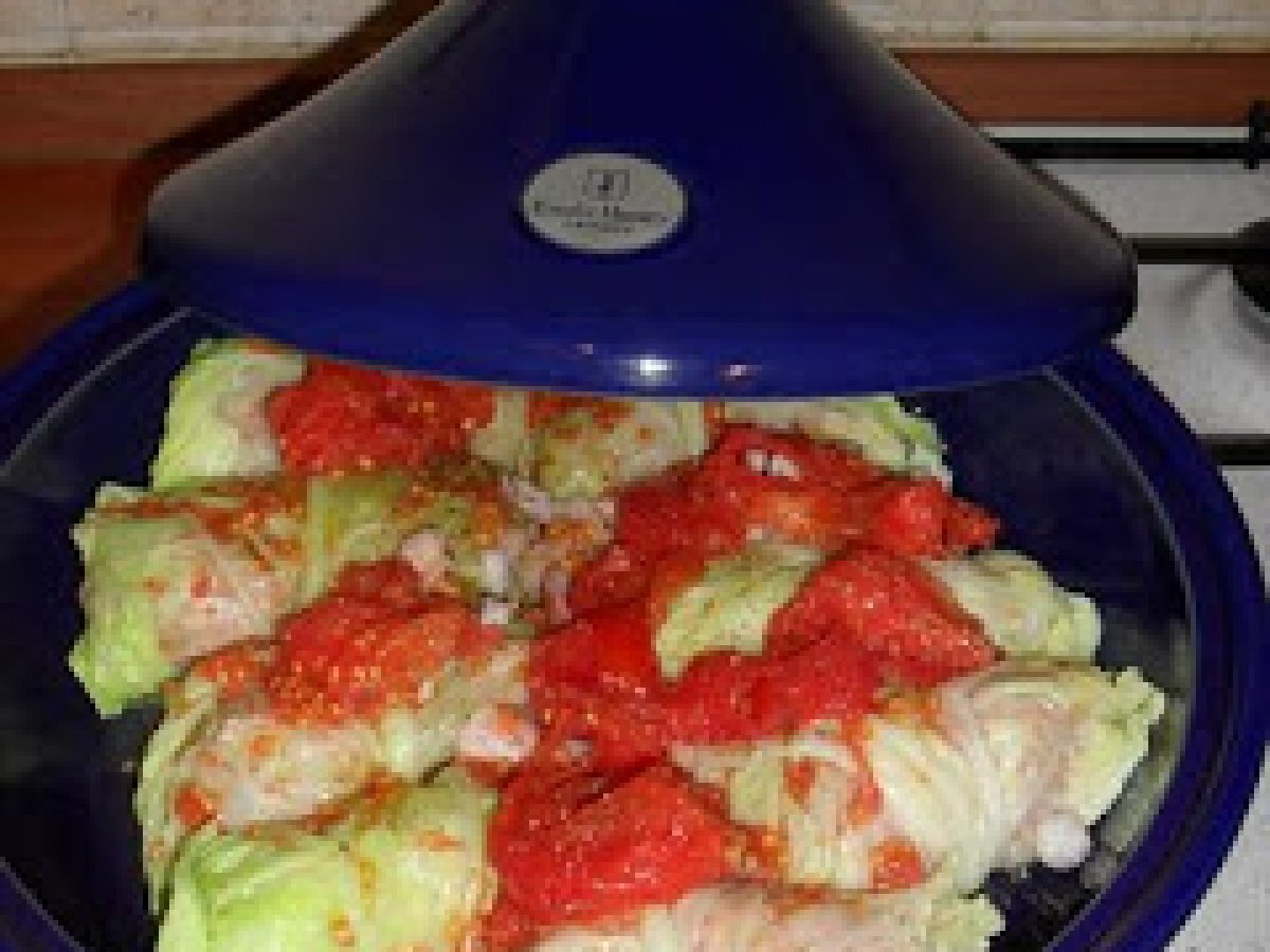 Tajine di verza ripiena PrecedenteProssimo Portata principalefacile1 h 10 m368 Kcal Invia questa ricetta ad un amico Stampa la ricetta Contatta l'autore della Ricetta Pubblica la foto di questa ricetta Ingredienti 6 10 larghe foglie di verza 600 g di macinato di bovino 6 pomodori 80 g di pancetta 20 olive tagliate a rondelle 50 g di parmigiano 2 uova 2 scalogni mezzo bicchiere di vino bianco sale e pepe Olio extravergine di oliva Costo stimato: 11.73Euros€ (1.95€/Porzioni)