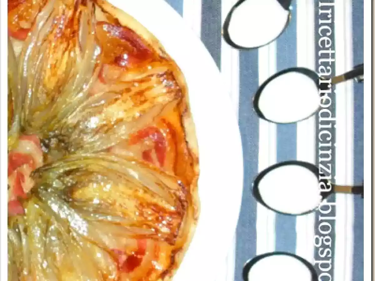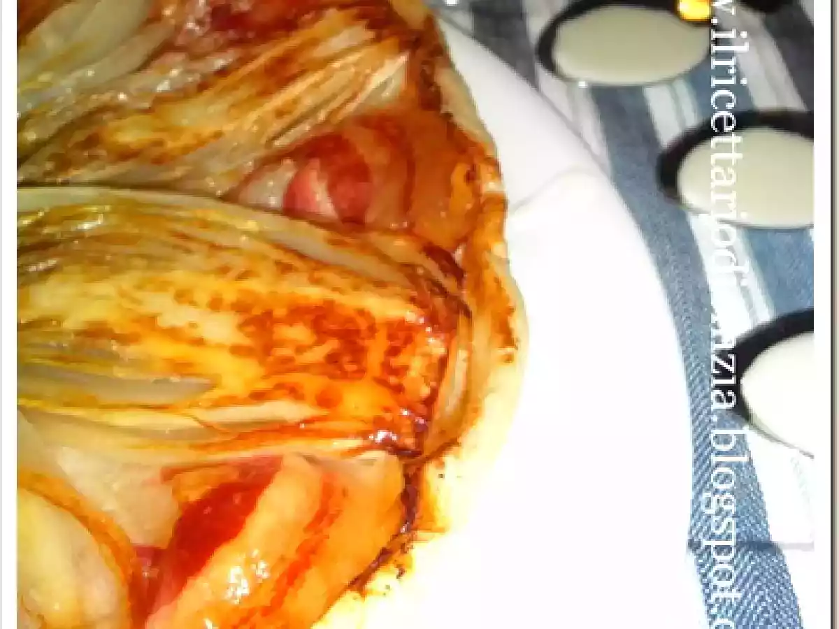 Tarte tatin di indivia belga e pancetta PrecedenteProssimo Portata principalefacile50 min1143 Kcal Invia questa ricetta ad un amico Stampa la ricetta Contatta l'autore della Ricetta Pubblica la foto di questa ricetta Ingredienti 2 5 cespi di indivia belga 1 rotolo di pasta sfoglia 200 gr di latte 150 gr di caprino 150 gr di pancetta affettata spessa 1 cucchiaio di olio al tartufo 20 gr burro Costo stimato: 6.17Euros€ (3.08€/Porzioni)