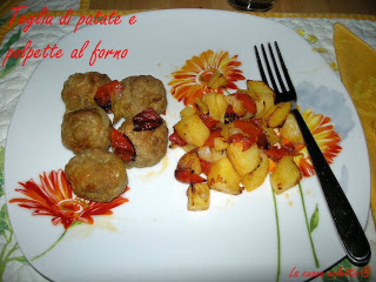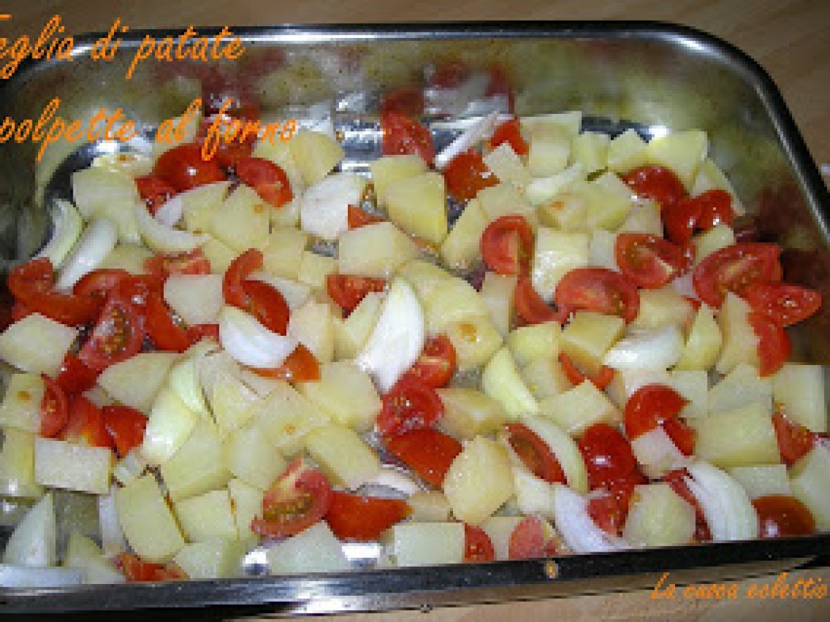 Teglia di patate e polpette al forno al forno PrecedenteProssimo Portata principalefacile1 ora Invia questa ricetta ad un amico Stampa la ricetta Contatta l'autore della Ricetta Pubblica la foto di questa ricetta Per un grande evento optare per questi ricette. Ingredienti 4 250 g di polpa di vitellone 500 g di patate 1 uovo pane raffermo 15 pomodori ciliegini 1 cipolla dorata noce moscata parmigiano pecorino romano 1 aglio olio extravergine di oliva aceto di vino bianco sale