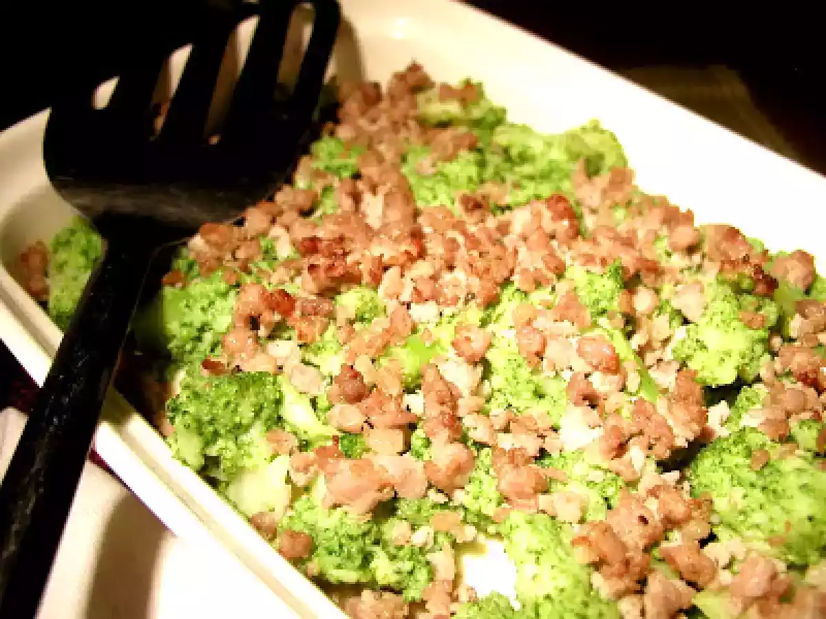 Teglia di polenta, scamorza, broccoletti e salamella Portata principalefacile50 min Invia questa ricetta ad un amico Stampa la ricetta Contatta l'autore della Ricetta Pubblica la foto di questa ricetta Ingredienti 2 160 gr. farina di mais per polenta 450 gr. broccoletti già puliti e fatti a cimette 1 salamella 45 gr. scamorza 1 spicchio aglio olio extravergine di oliva sale peperoncino di Cayenna due bei pizzichi di semi di finocchio burro per la teglia
