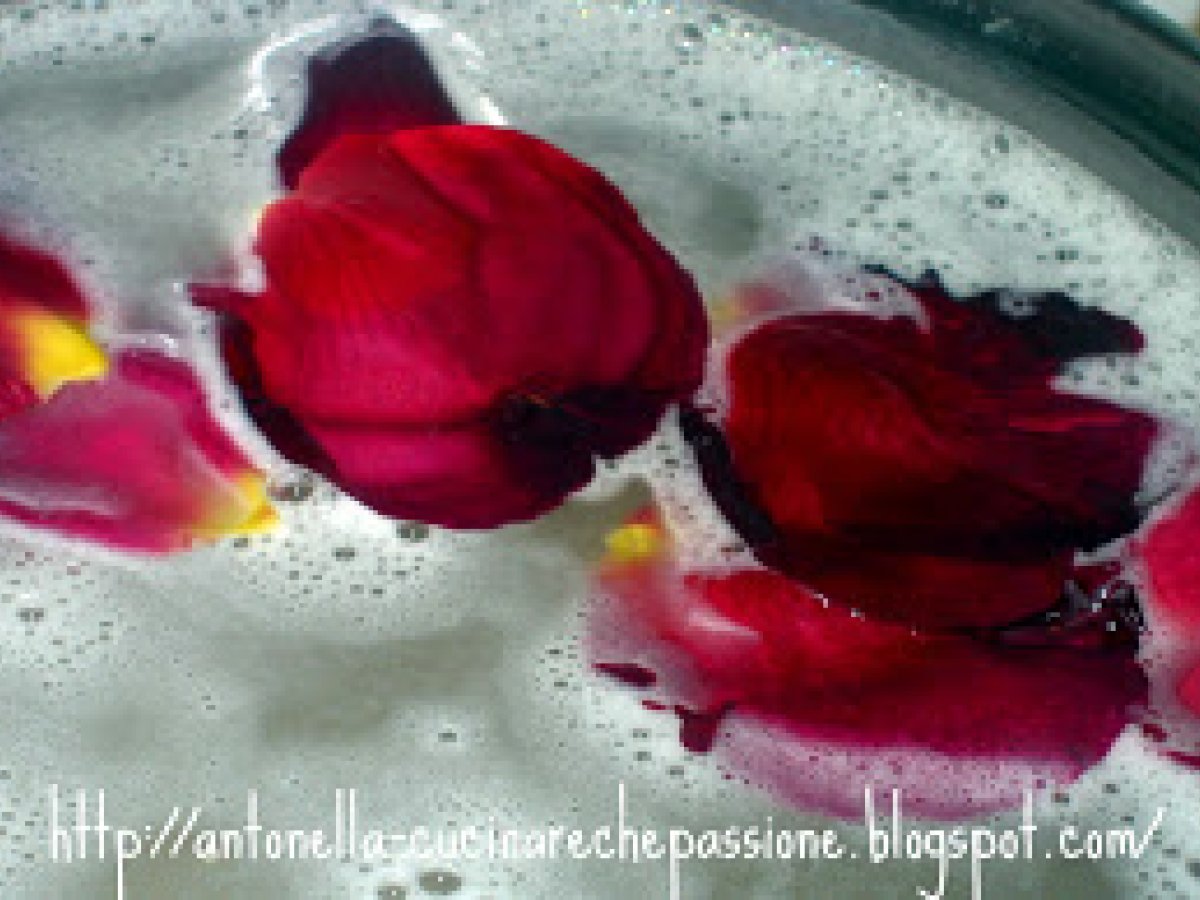 - Nel frattempo, lessare il riso in acqua salata insieme ai petali di rosa mai fatta una cosa del genere ma il profumo delle prime rose di maggio è veramente penetrante e si sente nell'acqua prima i petali galleggiano un po',poi scendono rilasciando il loro aroma ai chicchi di riso.