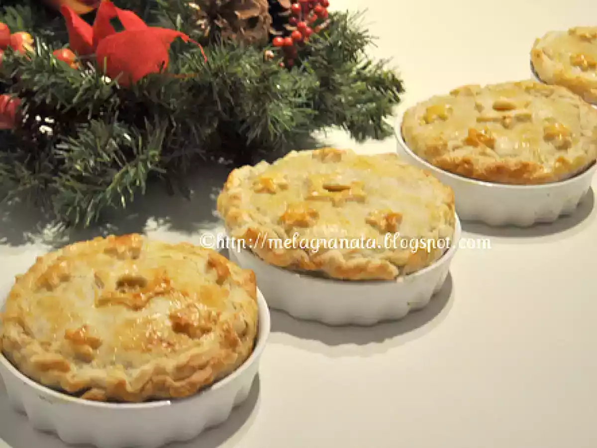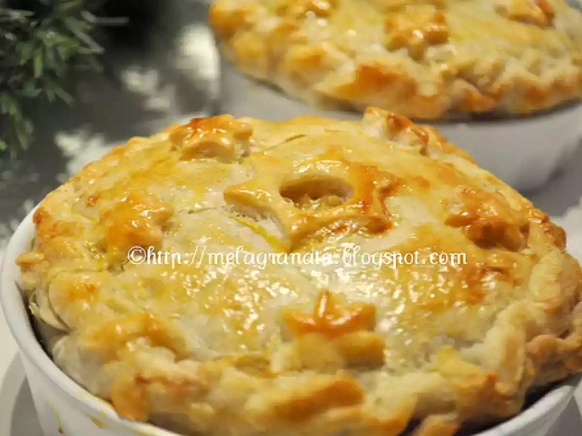Timballini di tacchino di riciclo. vota adesso PrecedenteProssimo Portata principalefacile1 ora Invia questa ricetta ad un amico Stampa la ricetta Contatta l'autore della Ricetta Pubblica la foto di questa ricetta Ingredienti 4 Tacchino arrosto Bechamelle Parmigiano reggiano Pisellini in scatola Prezzemolo tritato fine Funghi secchi Pasta sfoglia Uova